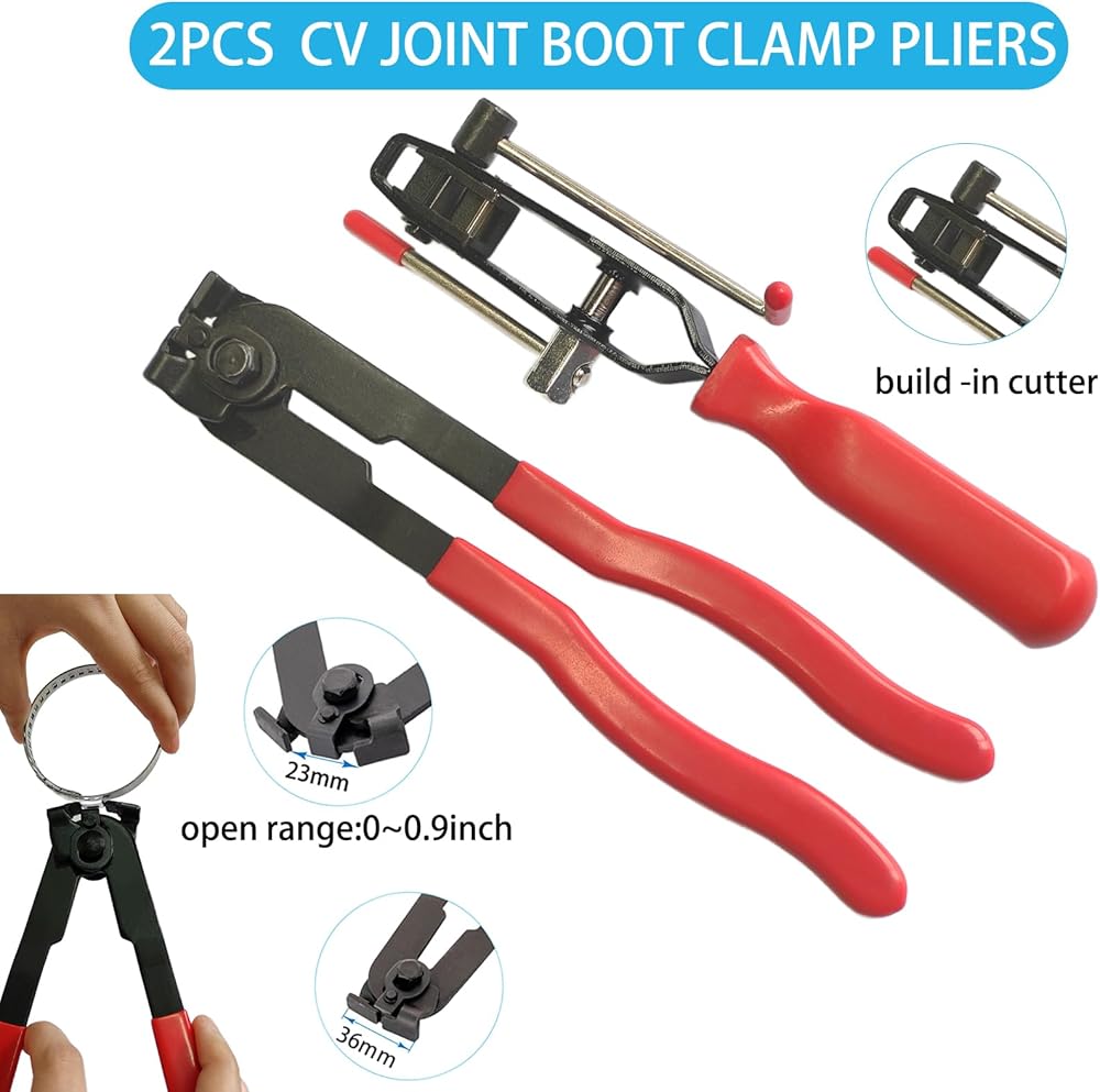 • ☛【Great Performance】Our cv joint boot clamp pliers include 2pcs CV joint boot clamp pliers with a built-in cutter and winding mechanism, the banding can be tightened and cut quickly and effectively.