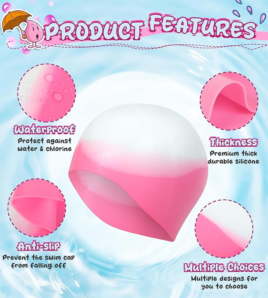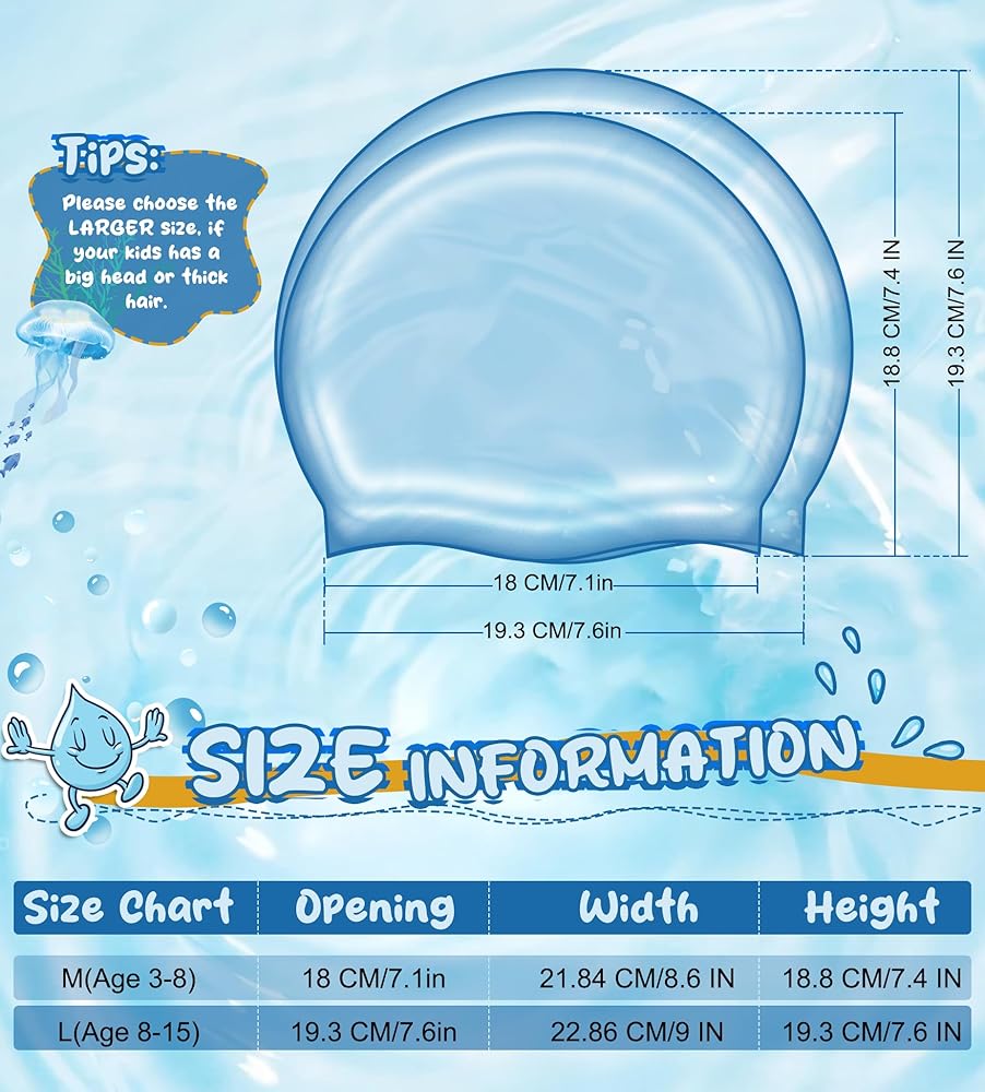 • مرونة عالية ولا تشوه: تتميز قبعة السباحة بمرونة ممتازة. لذلك من السهل ارتداؤه ويمكن توسيعه ليناسب رأسك وشعرك، لكنه لن يتشوه بعد الاستخدام. مصممة للفتيات / الأولاد ذوي الشعر القصير أو الطويل: صغير للأطفال من 4 إلى 8 سنوات؛ متوسط ​​للأطفال من سن 8 إلى 12 عامًا؛ ماذا تنتظر؟ أضف إلى البطاقة ودع أطفالك يستمتعون بوقت السباحة مع هذه القبعة الرائعة!