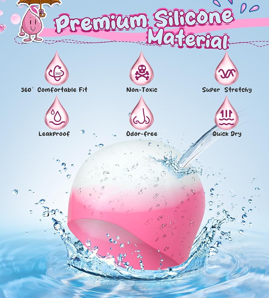 • ملاءمة مريحة ومضادة للانزلاق: مادة السيليكون عالية الجودة تضمن أن قبعة السباحة مقاومة للغاية للتمزق والمتانة. السيليكون الناعم يجعل من السهل ارتداؤه ويمكنه حمل الشعر الطويل والكثيف دون الشعور بالضيق والاختناق. ستناسب قبعة السباحة للأطفال رأسك بشكل مريح ولن تنزلق بسبب تصميمها المضاد للانزلاق ومرونتها الفائقة.