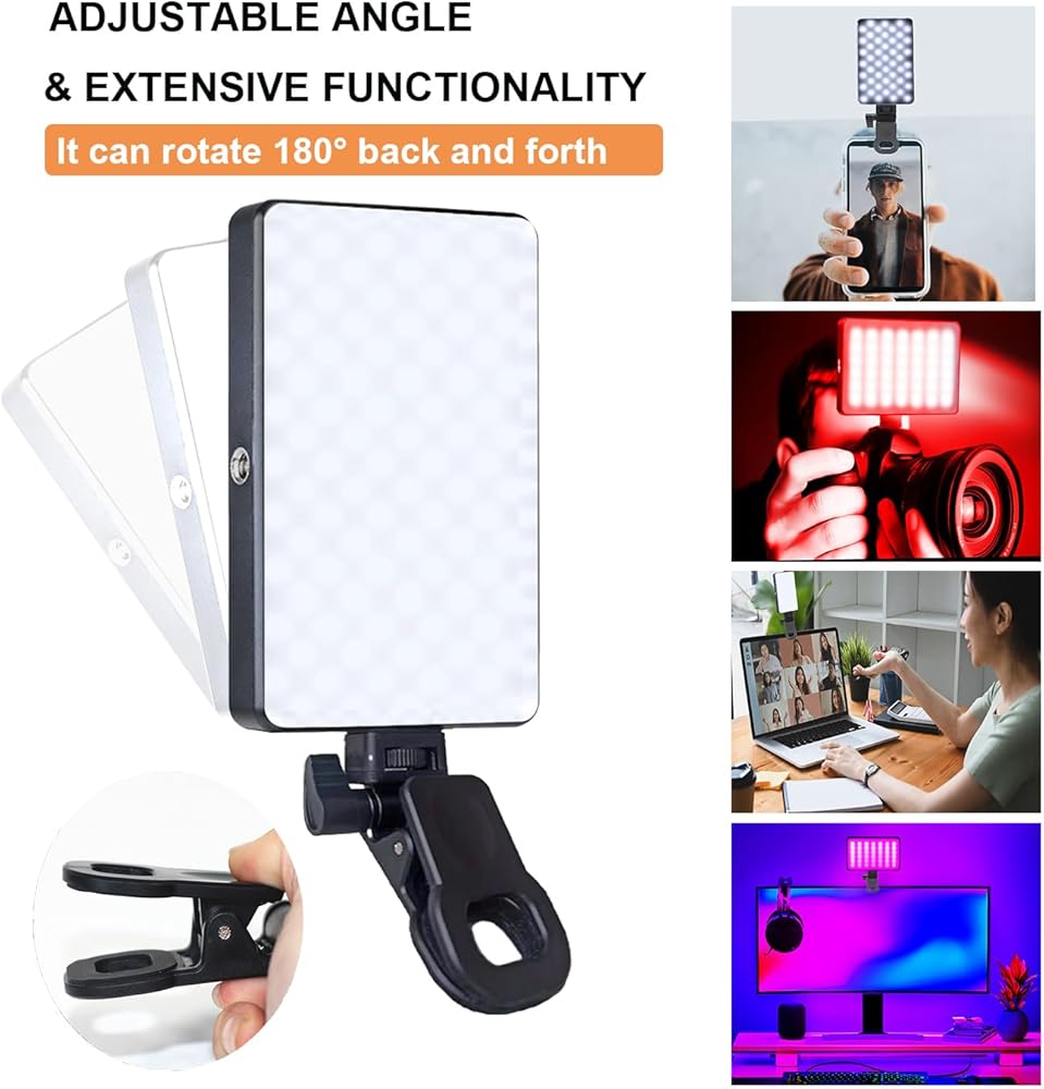 • توافق واسع: ضوء سيلفي LED متوافق مع الهواتف الذكية وأجهزة الكمبيوتر المحمولة والكاميرا وما إلى ذلك، يسمح المشبك الخاص به بتعديلات مرنة، وهو أداة احترافية لإنشاء مقاطع فيديو حية باستخدام الهاتف الذكي أو الكمبيوتر، مثالي لفيسبوك ويوتيوب وتويتر وفيس تايم وما إلى ذلك.