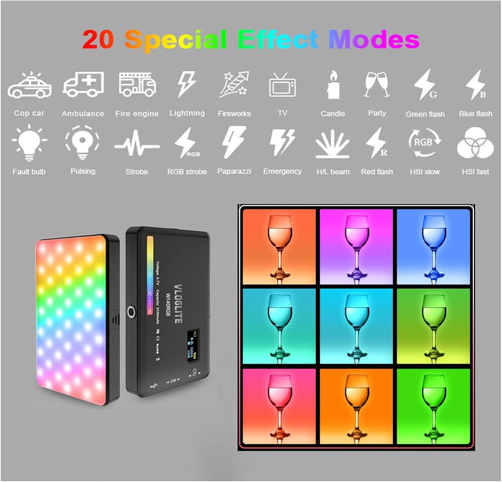 • 【إبداع لا حدود له】مصباح هاتف LED ملون بالكامل 360 درجة مزود بـ 20 وضعًا فريدًا من نوعه للتأثيرات الخاصة، يمكنك بسهولة ضبط السطوع وإنشاء مشاهد مثالية لتلبية احتياجات الاستخدام المتنوعة، مما يسمح لك بأن تكون ساحرًا في أي موقف.