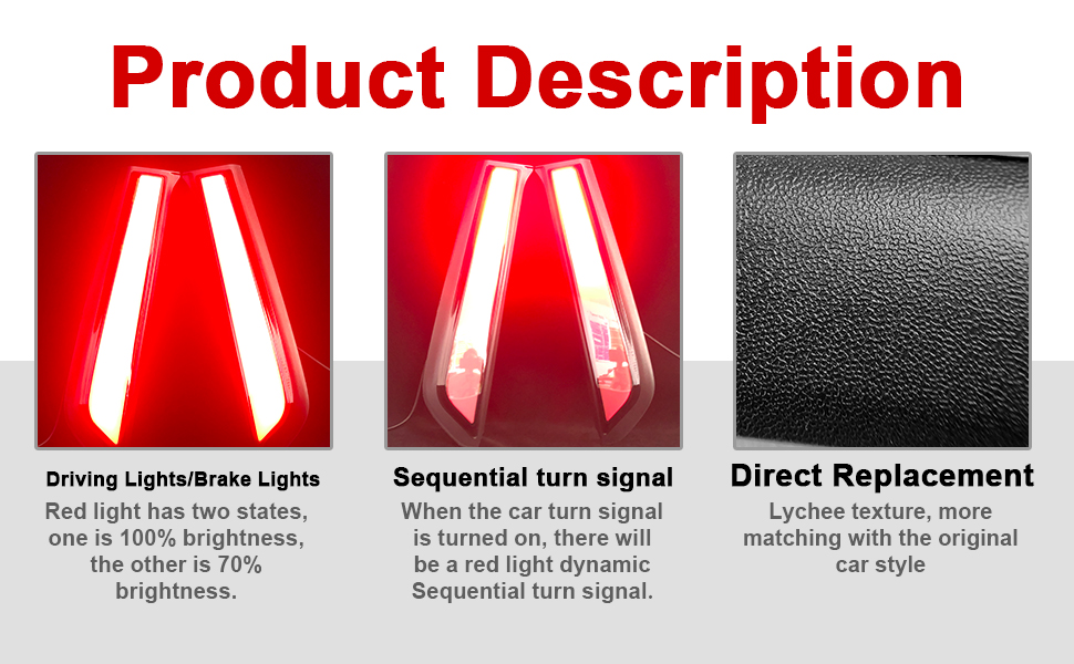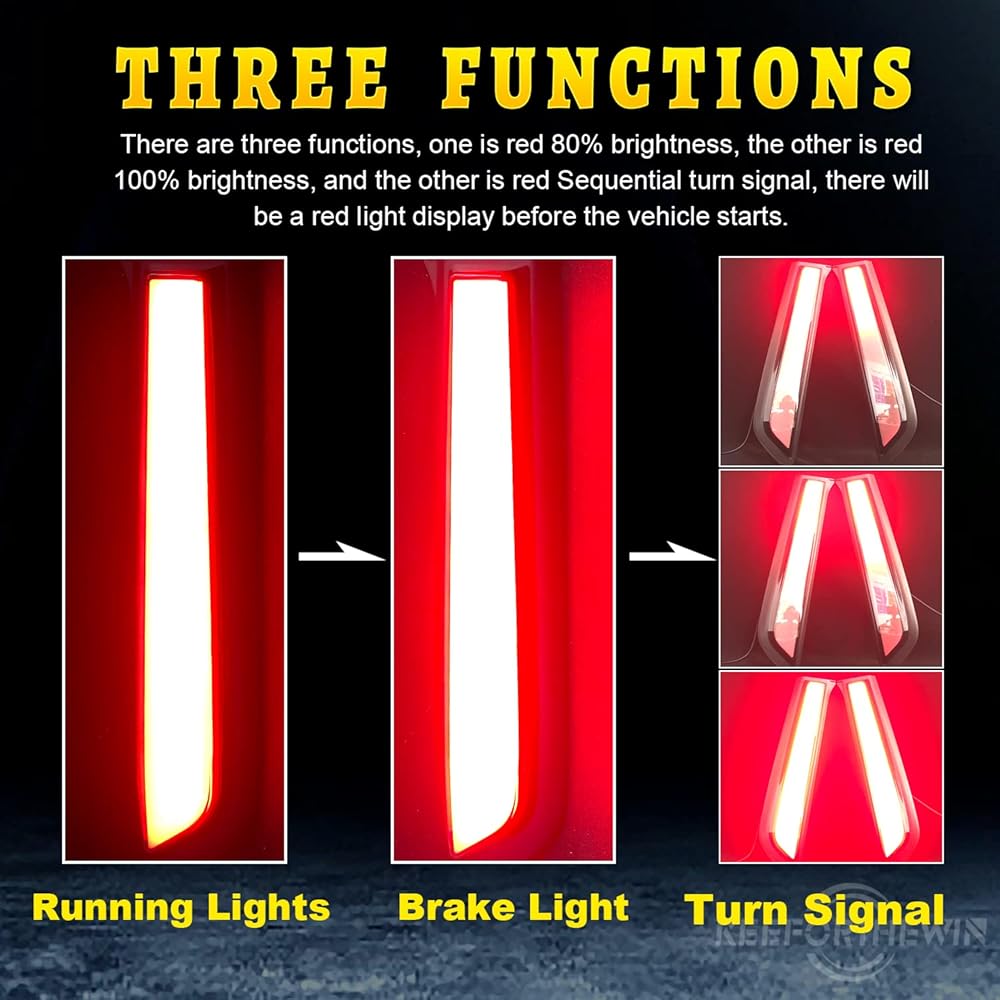 • التثبيت: يأتي مع محولات التوصيل والتشغيل، لا حاجة إلى أسلاك الفرامل/الصنبور، ما عليك سوى توجيه أسلاك مصباح المصد LED إلى المصباح الخلفي OEM وتوصيل المحول مباشرة.