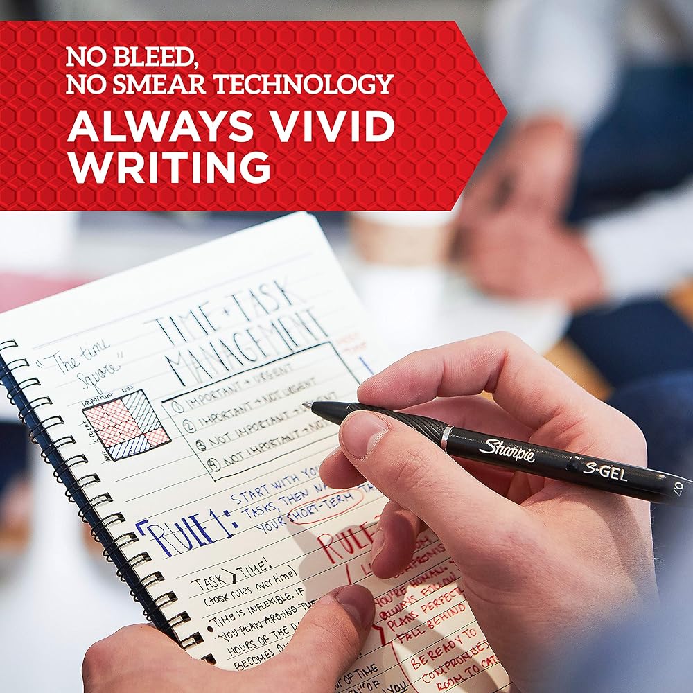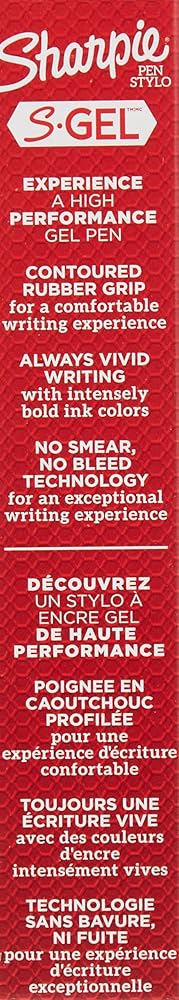 The power of Sharpie is now in a gel pen with the Sharpie S-Gel. With no smear, no bleed technology and bold, best-in-class ink, this Sharpie pen delivers always-vivid writing. It's a high-performance gel pen with a sleek, professional look that makes it a writing instrument you won't want to loan out. And the contoured rubber grip makes for comfortable writing during any task. Available in multiple point sizes, barrel finishes and gel ink colors, Sharpie S-Gel offers a smooth writing experience perfect for homes, schools, or offices.
