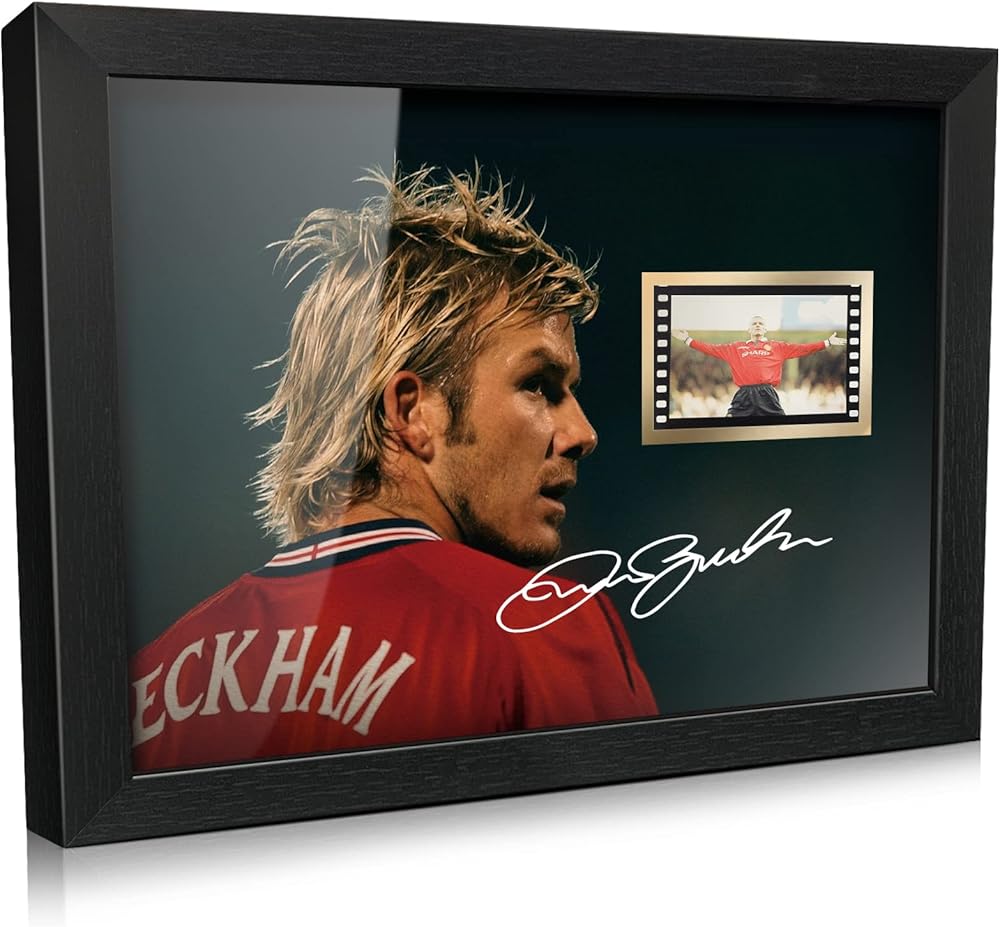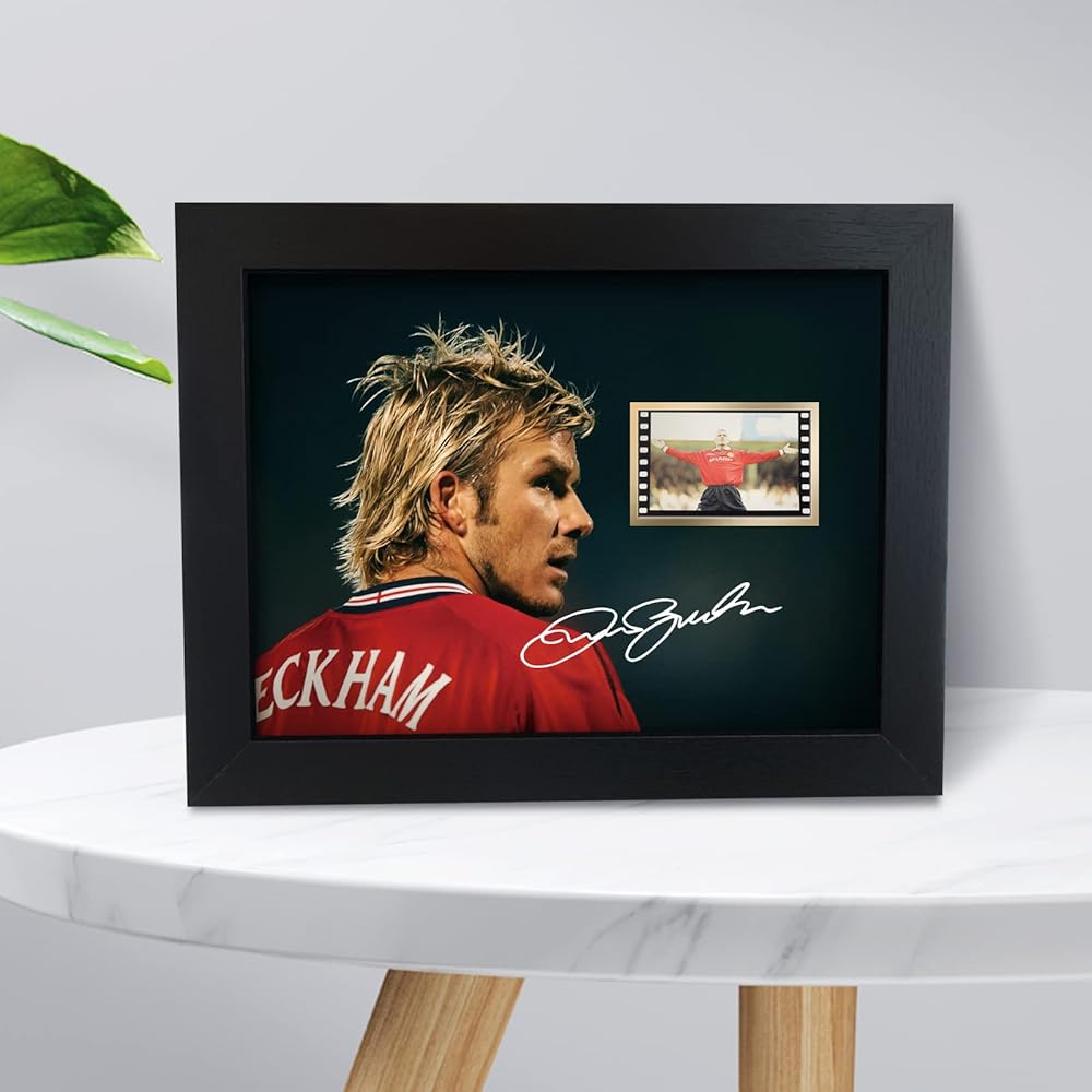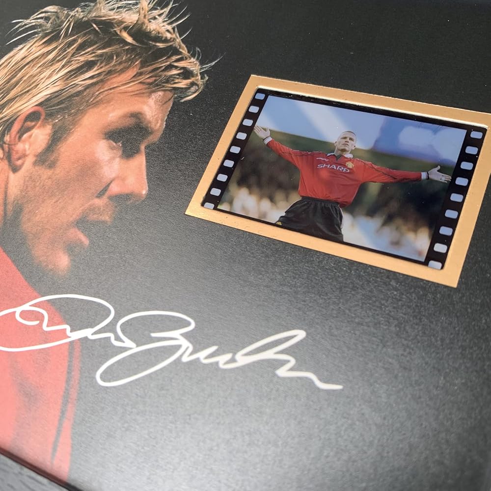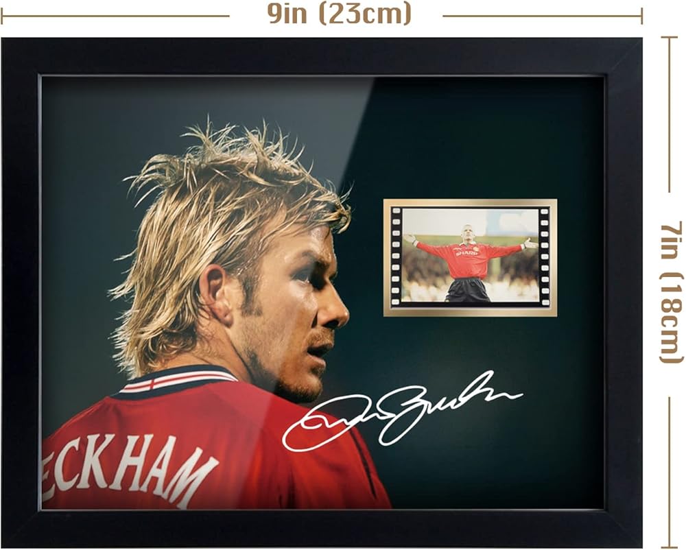 ORIMAMI committed to designing more high-quality collectible gifts and home office decor for huge soccer fans, suitable for any occasion.The receiver will love it! About David Beckham: He is an English footballer who has played for Manchester United and Real Madrid, as well as representing his country 100 times.His talent was obvious from an early age and he signed with Manchester United on his fourteenth birthday. He won many trophies with Manchester United, including the Champions League. Film Cell Showing: one of the scenes from Manchester United vs Leicester City.Premier League 1999/2000.The Pichture Signed:Our designs feature a digital reprint of the original autograph.They are printed,not hand signed originals. This black frame made of high-quality MDF wood,high transparent PMMA panel;HD printed picture more clear;Picture size:8x6 inches,Framed size:9x7x0.5 inches(23x18x1.2 cm).Framed type is desktop support. A great gift and a perfect addition to your home decor.Should you have any doubt please contact us before purchase,and will do all we can to resolve any problems.If you are not satisfied with our products,and we provide up to 30 days of exchange or refund services.