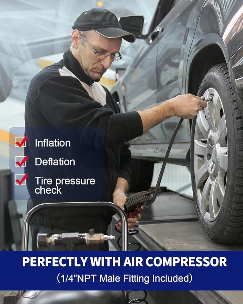 【مثالي مع ضاغط الهواء】يأتي مقياس ضغط الإطارات الرقمي كاملاً مع كل ما تحتاجه لربطه بضاغط الهواء الخاص بك، مما يسمح لك بضخ الهواء بشكل آمن والتحقق من الضغط بسرعة للوصول إلى المكان الذي تريده.