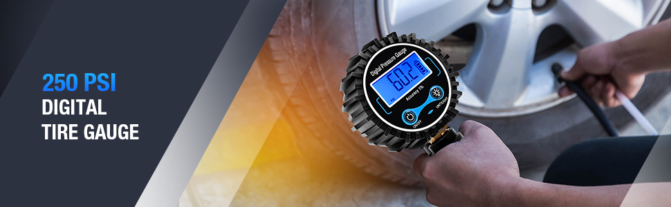 • INSTANT ON DISPLAY: Built-in LCD backlit display for low light conditions. Get best precise measurement will be within +/-1% off this Pressure range (0-250 psi), Resolution (0. 1 psi) . Max pressure 250 psi max.