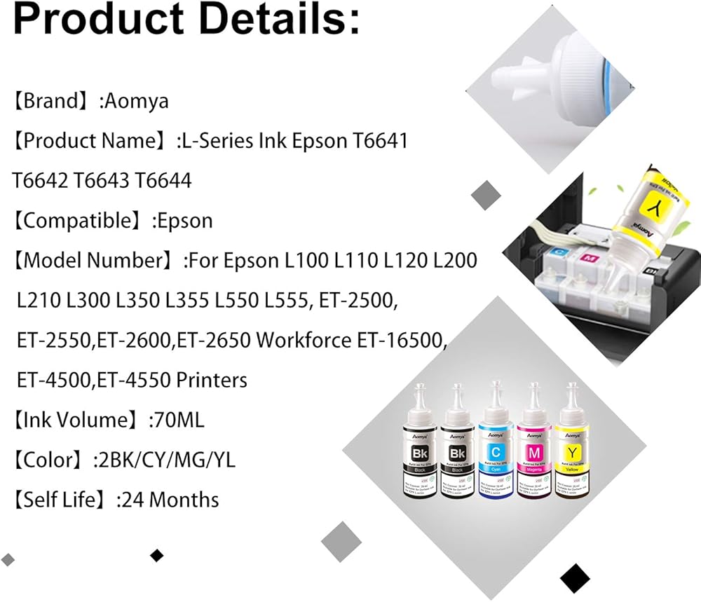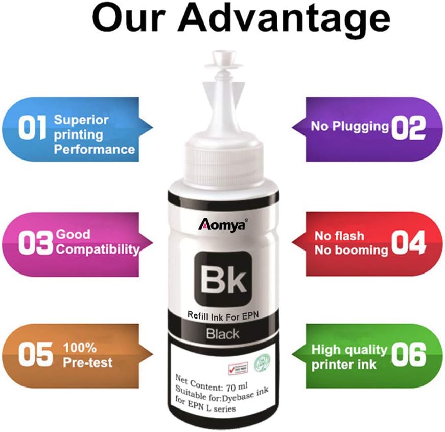 طباعة سلسة: حبر صبغ Aomya مصمم لمنع رأس الطباعة من التآكل والانسداد، ويوفر أفضل موثوقية للطباعة. مع حبر عالي النقاء، سهل التشغيل. مناسب للعديد من أنواع الورق، مثل ورق ملصقات الصور النافثة للحبر شديد اللمعان