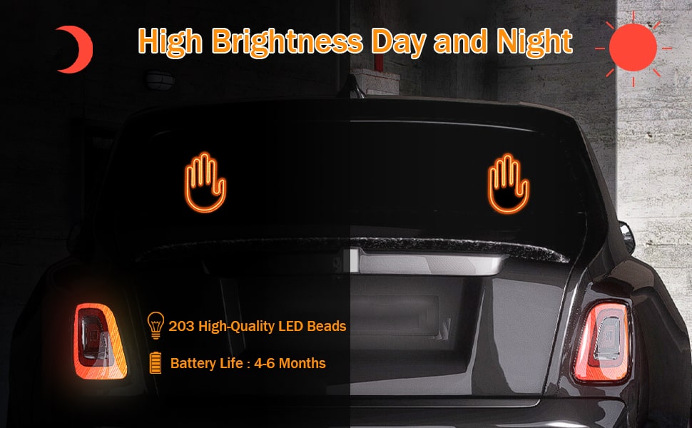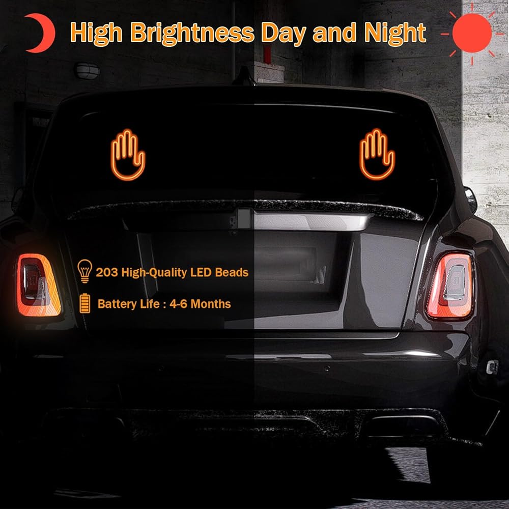 【مرئية ليلاً ونهارًا】 مجهزة بـ 203 خرزة مصباح LED، يوفر ضوء إصبع السيارة إضاءة ساطعة، مما يجعل سيارتك مميزة أثناء النهار والليل. هذه الإضافة الجذابة تعزز الجمال والرؤية.