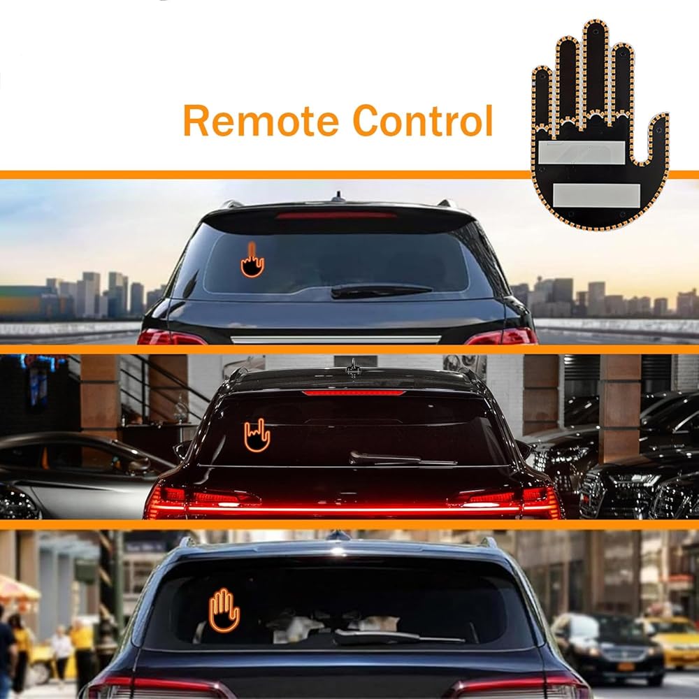 Hiseanllo ضوء لفتة اليد للسيارة مع جهاز التحكم عن بعد، ضوء إصبع السيارة LED علامة نافذة خلفية مضحكة، علامة LED لغضب الطريق للسيارة، ملحقات السيارة للرجال