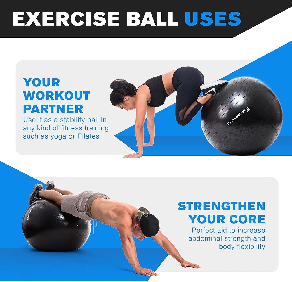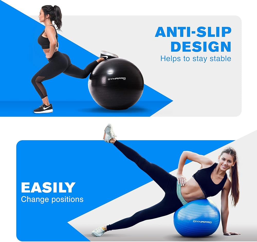 كرة تمرين DYNAPRO - مادة سميكة للغاية صديقة للبيئة ومضادة للانفجار تدعم أكثر من 2200 رطل، كرة ثبات للمنزل، اليوغا، كرة الصالة الرياضية، كرة الولادة، كرة العلاج الطبيعي، الكرة السويسرية، العلاج الطبيعي أو الحمل