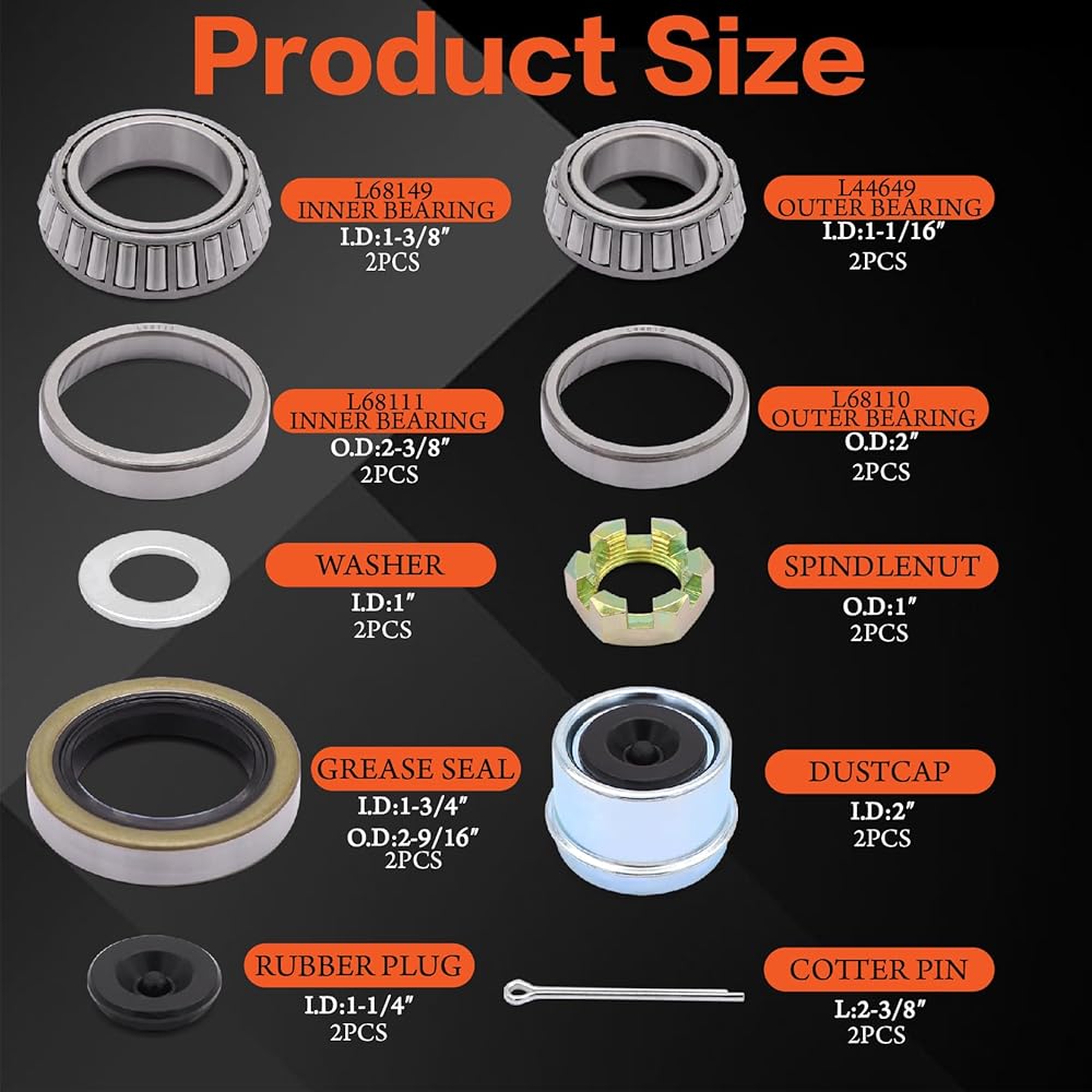 High Quality : Made of high quality chrome steel bearings, sturdy & durable, low wear , low vibration and low working noise.Double lip grease seals, no leak.All boat trailer parts are made of high quality materials and have a long service life.
