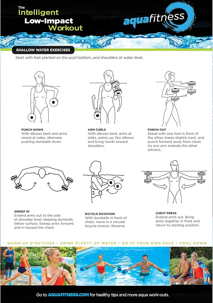معدات تمارين Aqua Fitness - اللياقة البدنية والتعافي والتدريبات منخفضة التأثير - معدات متعددة الاستخدامات للتمارين عالية ومنخفضة الكثافة - للأعمار من 14 عامًا فما فوق