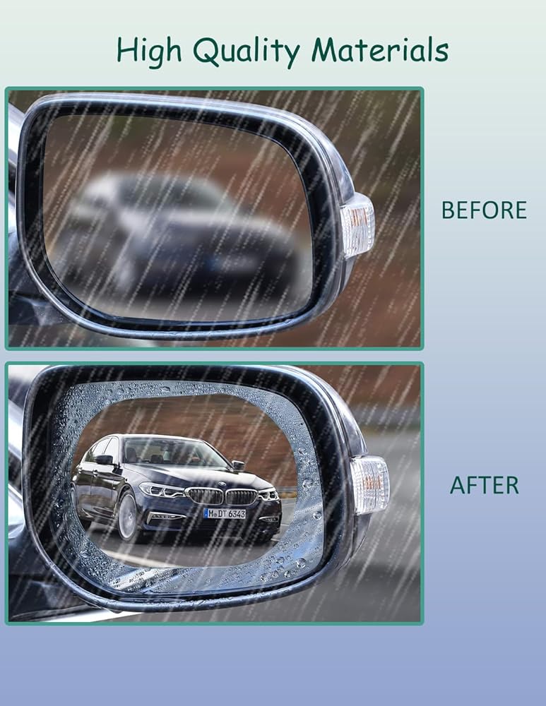 【جودة ممتازة】: غطاء المطر بمرآة الرؤية الخلفية مصنوع من ثلاث طبقات من طبقة الحماية من PET وطبقتين لاصقتين نانو، ويمكنه أن يكون كارهًا للماء بشكل فعال، ويضمن عدم تكثيف الندى، وتحسين رؤية القيادة، ونقل الضوء العالي، وانعكاس مضاد للوهج، وتقليل الوهج، تخفيف التعب البصري، ورؤية أكثر وضوحًا في الليل تحت الضوء الساطع.