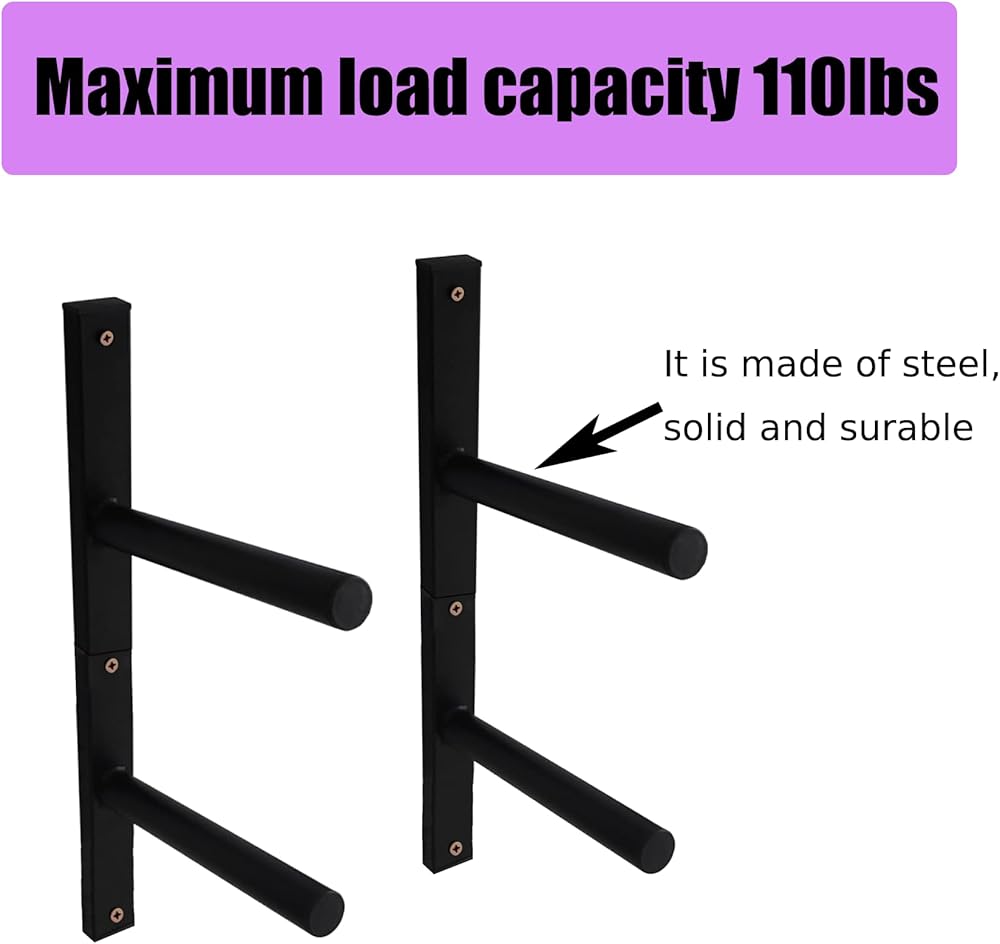 ☀ 【سعة تحمل قوية】أقصى سعة تحمل لرف جدار لوح ركوب الأمواج هي 110 رطل، وتضمن عملية اللحام الجيدة عدم كسر شماعة لوح ركوب الأمواج بسهولة.