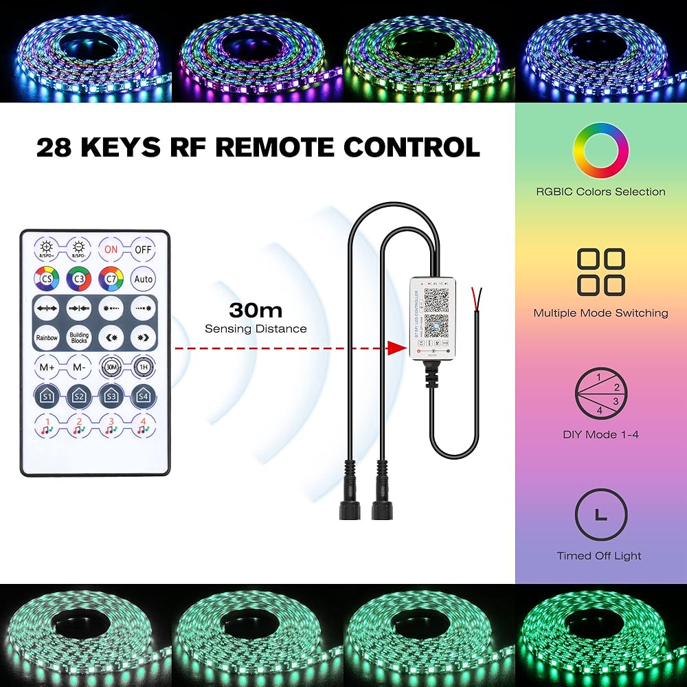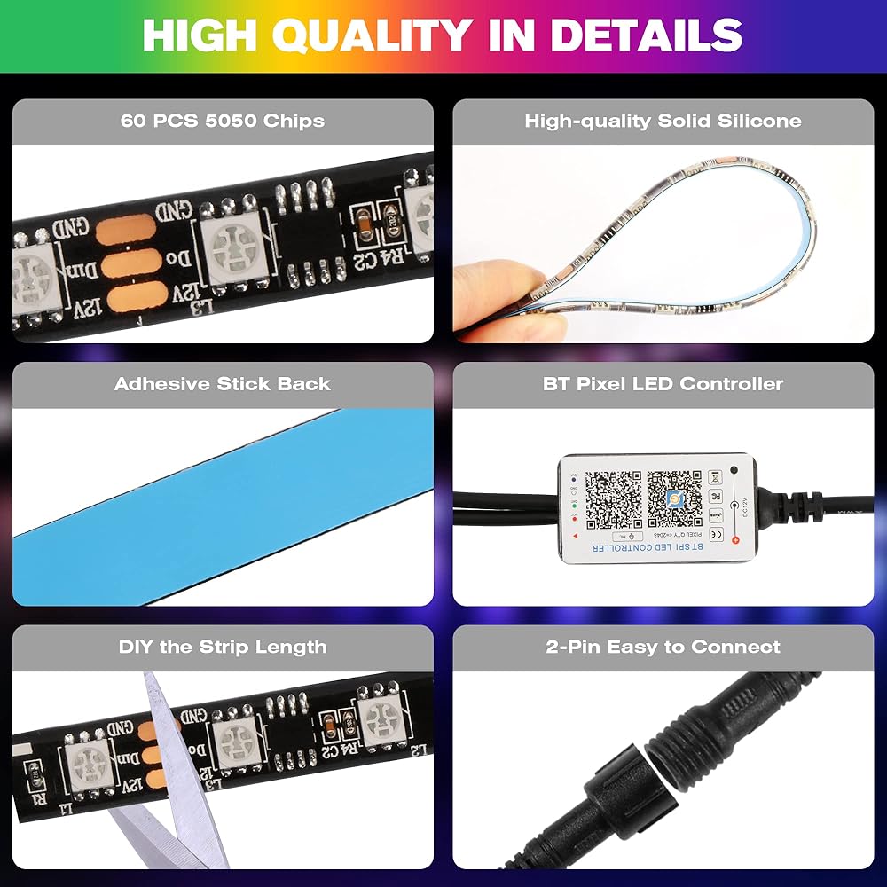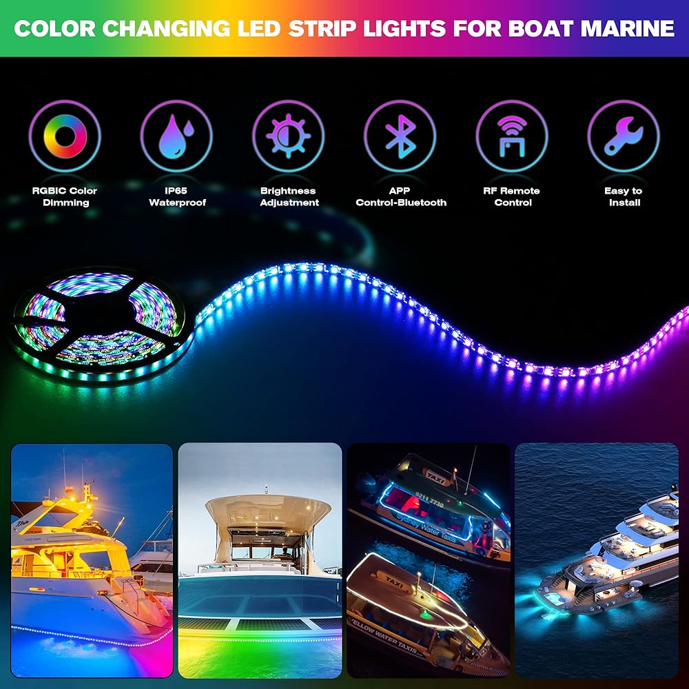 HUSUKU حلم اللون LED أضواء شريط القارب، 2x16.4ft RF بلوتوث LED مطاردة التحكم في الضوء مع جهاز التحكم عن بعد / التطبيق، 12V RGB IC اللون تغيير حبل أضواء عدة لعيد الميلاد عائم يخت تجمع الصيد البحري