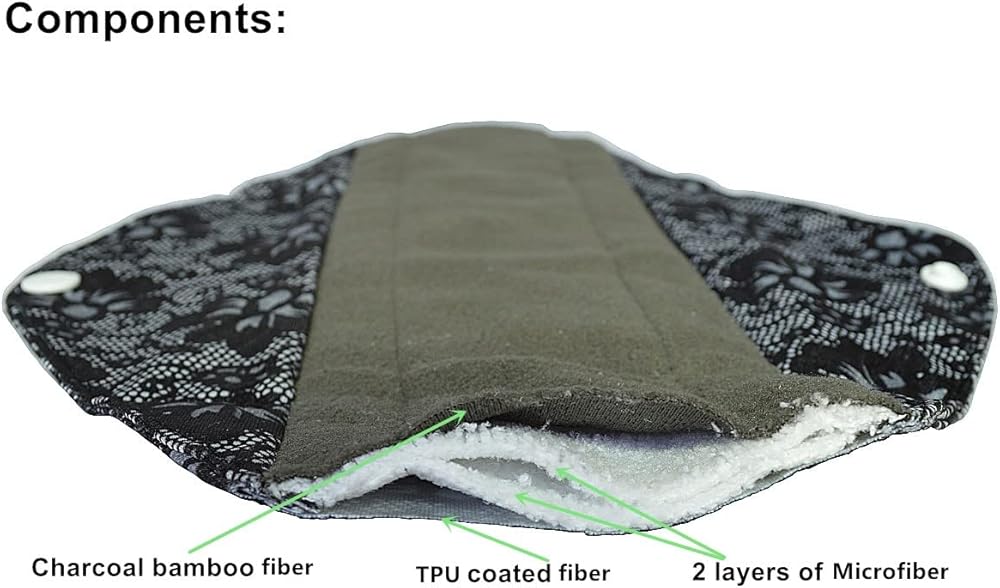 Composition: comprised of 4 layers, upper layer is l layer of soft and smooth grey side against your skin, inner layer is 2 layer of microfiber which is super absorbent and the outer layer is 1 layer with a waterproof TPU backing to prevent leaks.