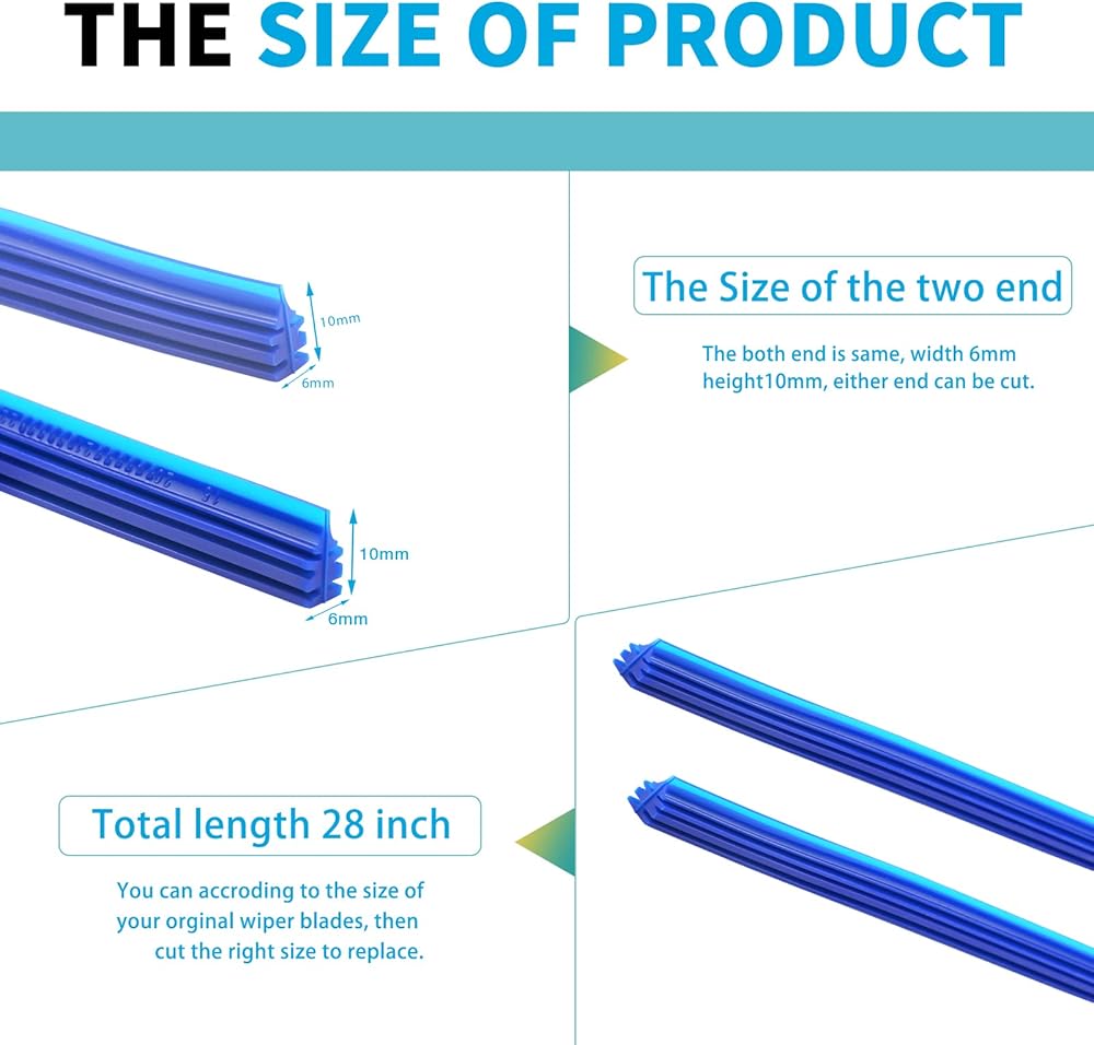 • 【Ajustable Length】We provide you pack of 4-28inch (700mm) cuttable wiper strips, this size is suitable for most wiper blades, and you can cut them according to the size of the original wiper, this wiper blade refill is a great replacement for the old rubber wiper blade refill.