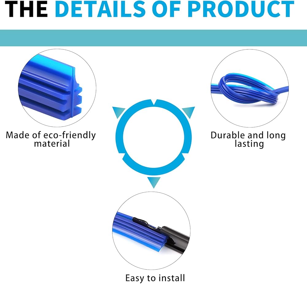 • 【Easy To Install】The silicone wiper blade refill is simple to install, remove quickly, shape size is 6mm width and 10mm height, wet it with water before installation, please make sure that our product can fit for the shape of your frameless wiper blades.