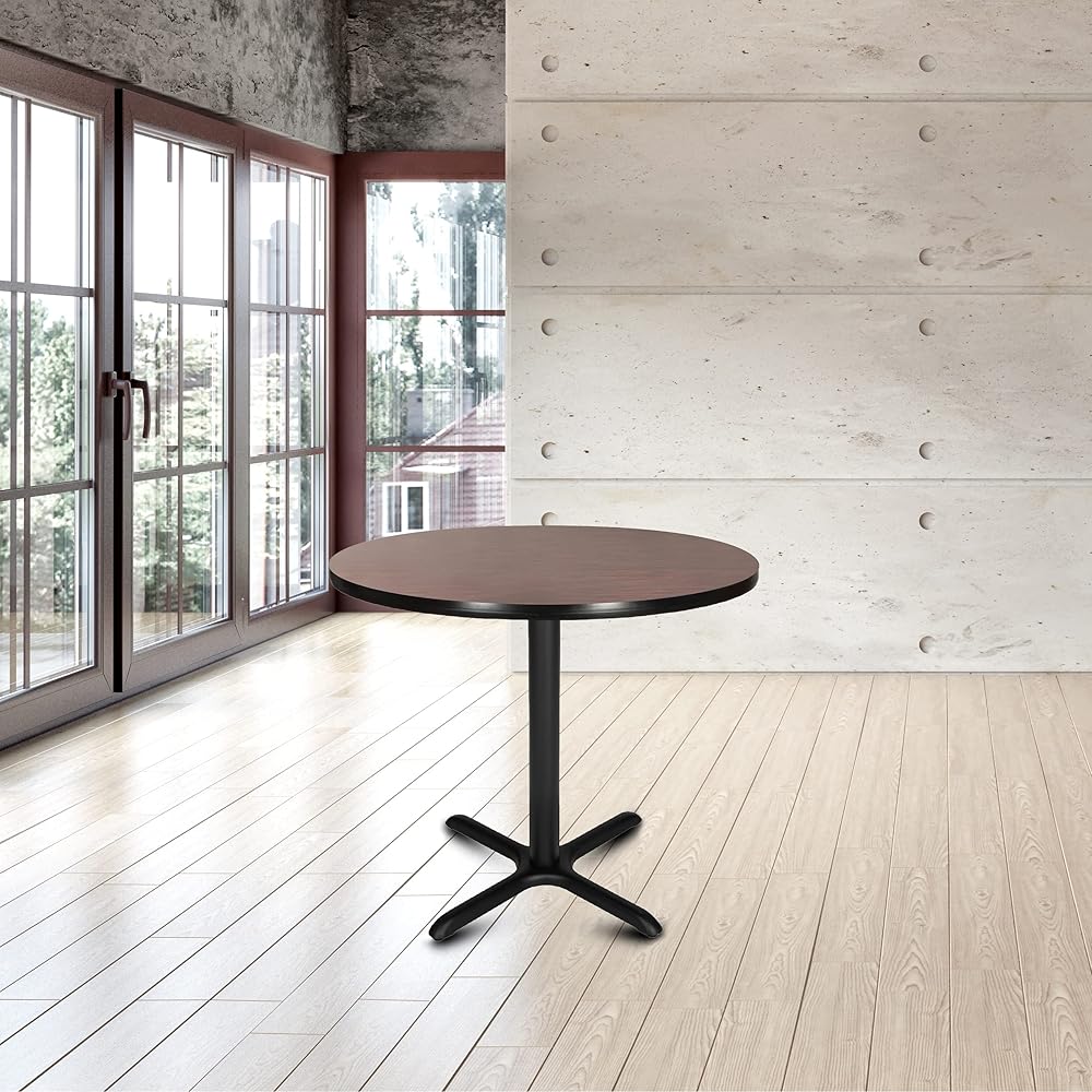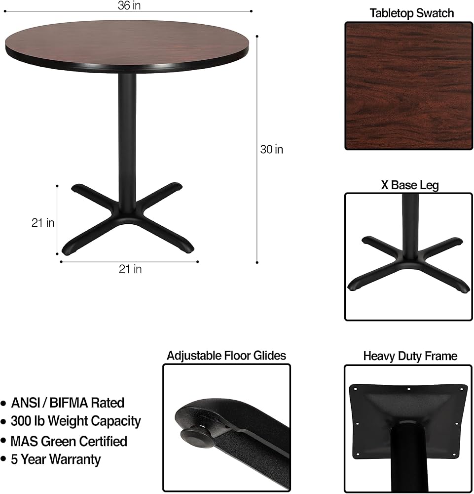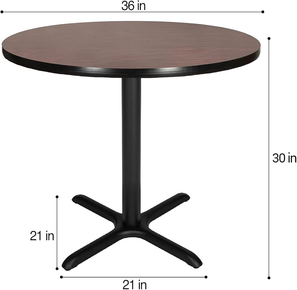 SPECIFICATIONS: This 30 inch tall table boasts a 1.25 inch thick high pressure laminate top, 16 gauge 3 inch thick steel pole, and it rests on non-marring polypropylene leveling glides to prevent floor scratching.