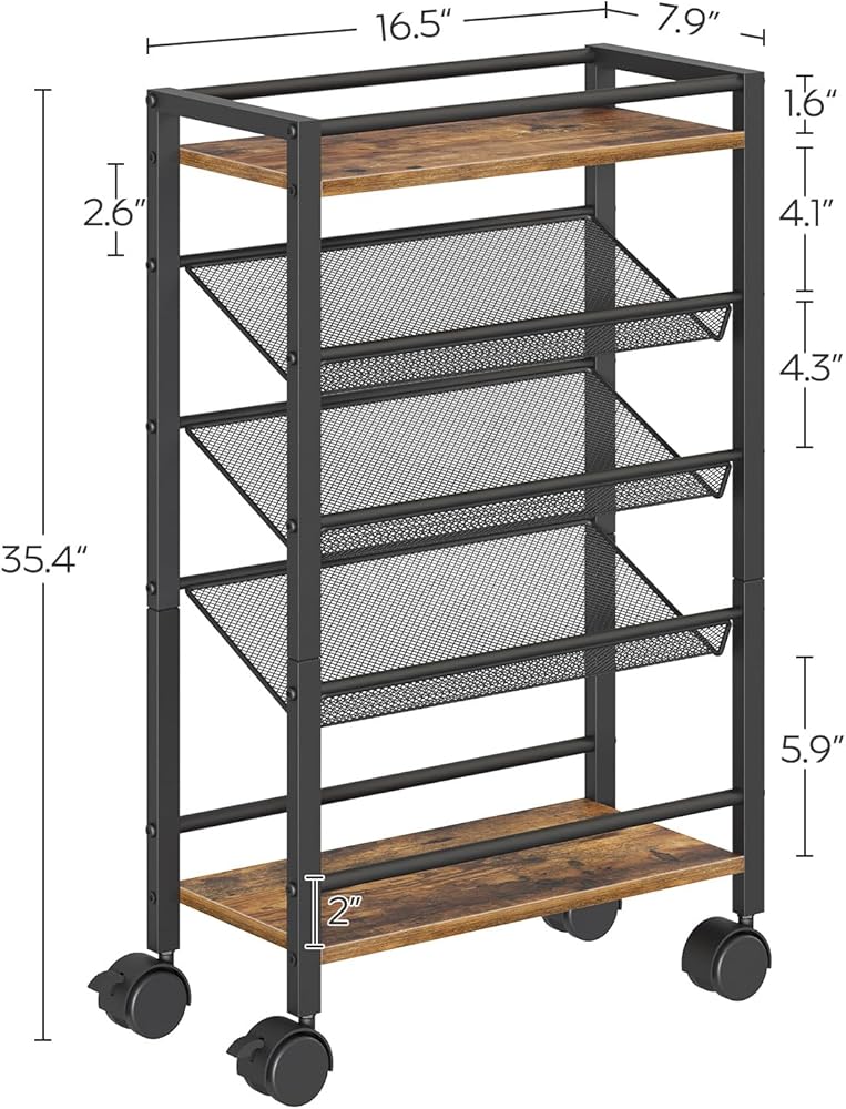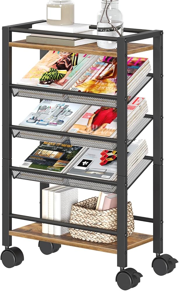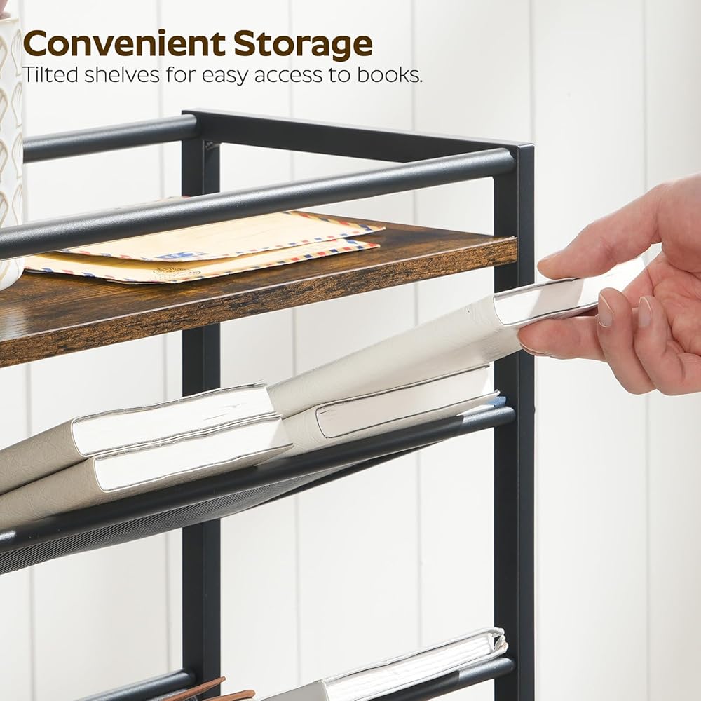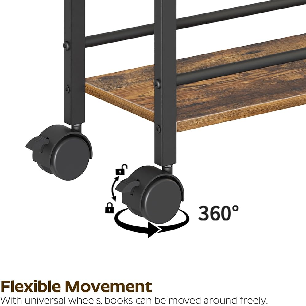 عربة رف كتب من 5 طبقات، عربة ملفات تخزين دوارة، خزانة كتب بعجلات، خزانة كتب منظمة على شكل حرف V من جانب واحد، للمكتب والمدرسة وغرفة النوم، بني ريفي SJ01BR