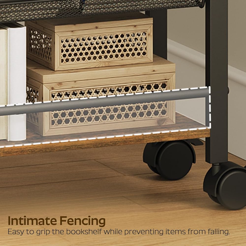 حرية الحركة: تأتي خزانة الكتب هذه مع 4 عجلات دوارة (2 مع فرامل)، مما يسمح لك بتحريكها. سواء كانت شرفة مشمسة أو دراسة هادئة، يمكن الوصول إليها بسهولة حسب الحاجة، مما يحررك من القيود المكانية على قراءتك