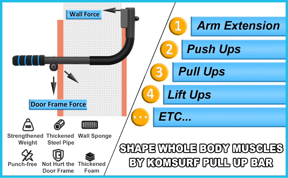 komsurf شريط سحب للمدخل، شريط سحب للمنزل، شريط الذقن متعدد الوظائف، شريط باب اللياقة البدنية المحمول، مدرب نظام الصالة الرياضية تجريب الجسم