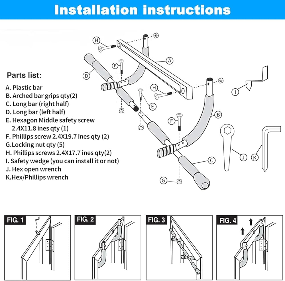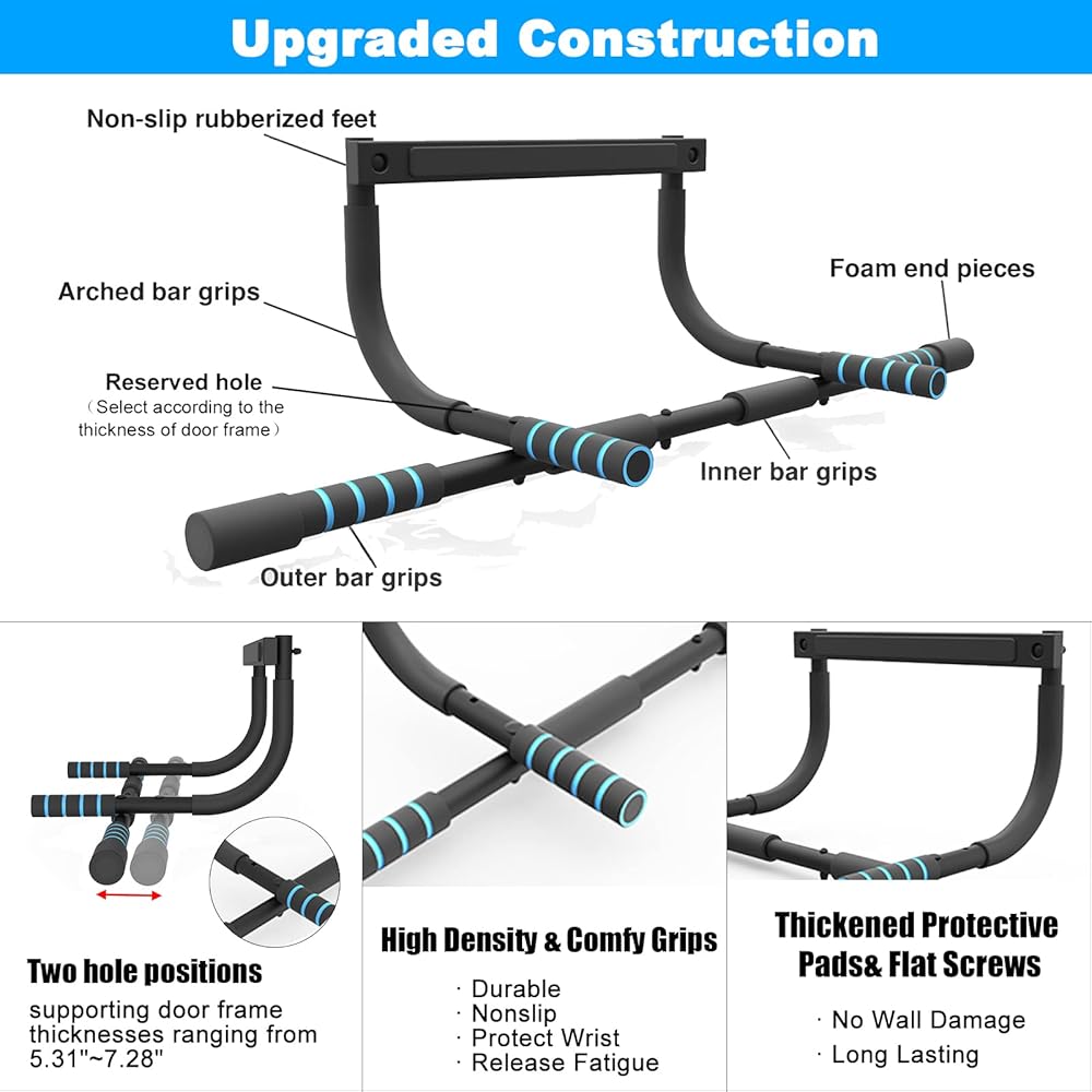 • 💪 【تصميم تصميم ممتاز 】 شريط السحب لأعلى للمدخل مصنوع من فولاذ متين وعالي الجودة مقاس 1.5 مم مصمم ليدوم طويلاً ويمكنه حمل ما يصل إلى 440 رطلاً. يستخدم شريط السحب الرافعة المالية حتى لا يكون هناك أي ضرر لإطار الباب الخاص بك.