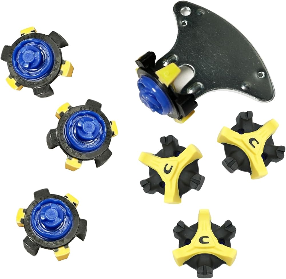 مسامير جولف، 28 قطعة من مسامير أحذية الجولف مع قطعة واحدة من مفتاح ربط مرابط الجولف سهلة التركيب، استبدال مسامير جولف لأحذية الجولف ثلاثية Fast Lok (أزرق/أصفر/أسود) LONGKUN