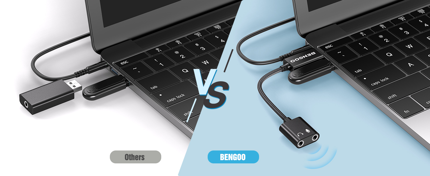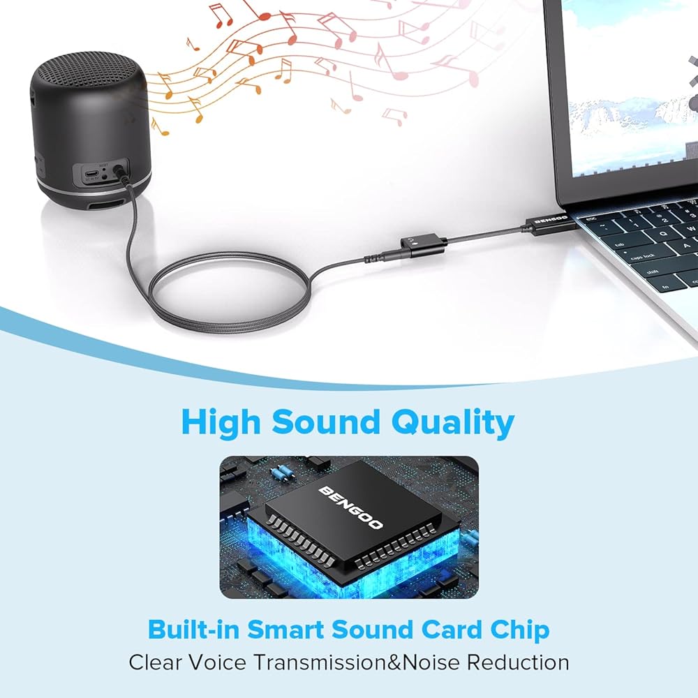 【جودة صوت عالية】: بطاقة صوت خارجية من BENGOO، شريحة ذكية مدمجة لتقديم تأثيرات صوتية أفضل، وتقليل تشتيت الضوضاء. فك تشفير إشارة الصوت بكفاءة، وتضخيم الإشارة التناظرية بشكل مثالي لإصدار صوت واضح للغاية.