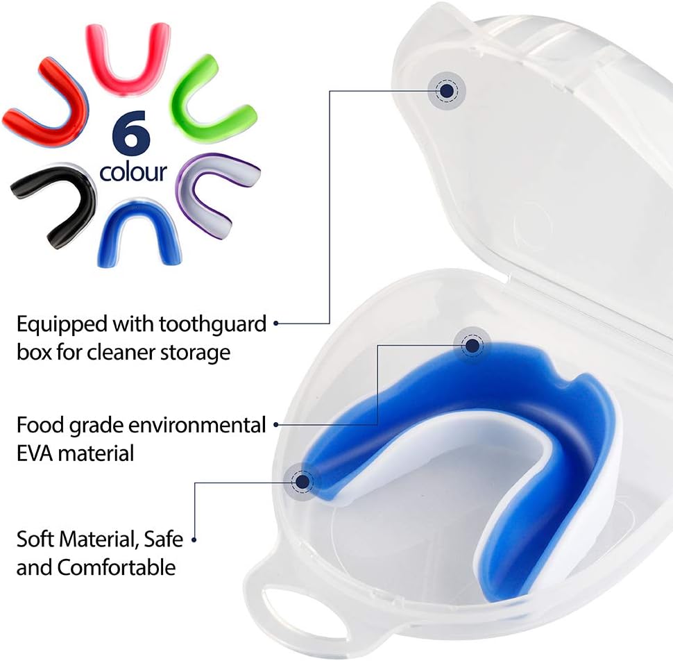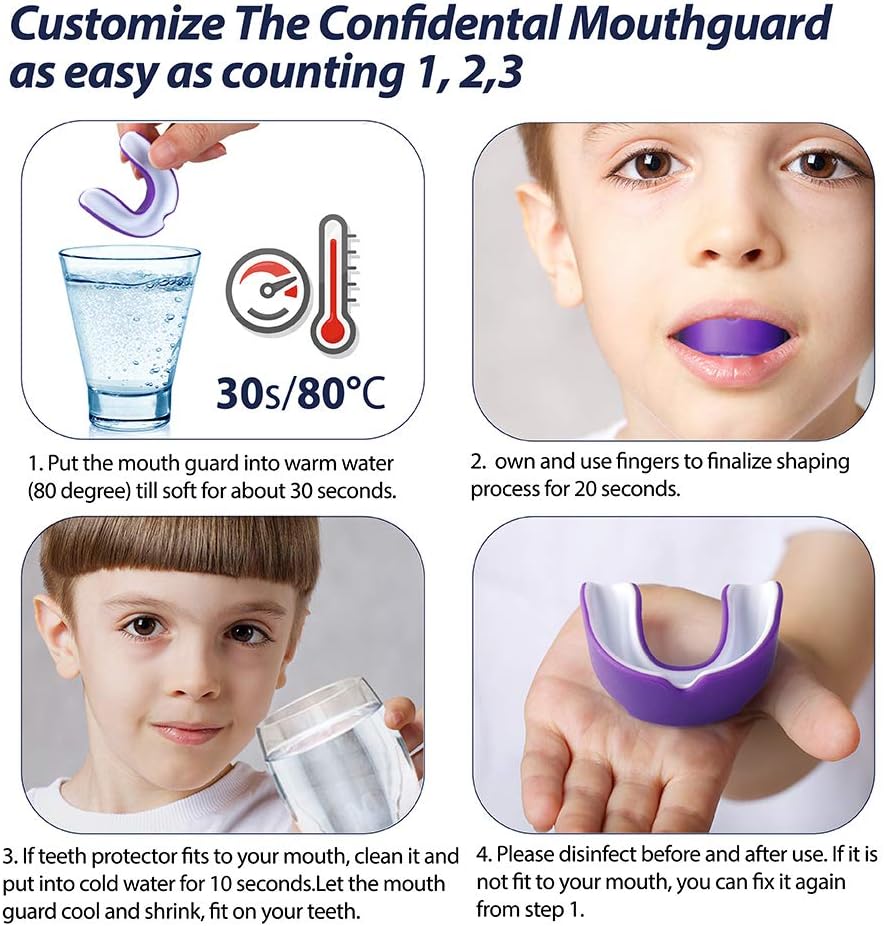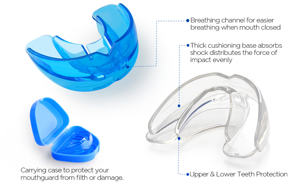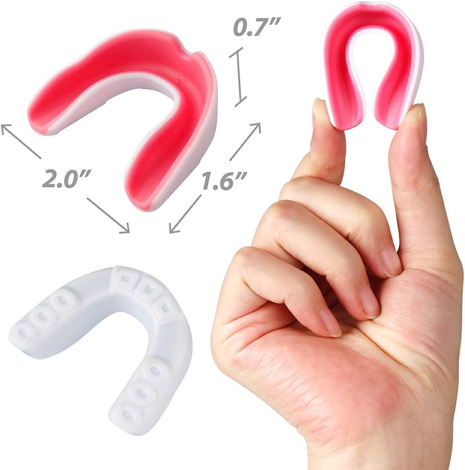 【تشمل العبوة】 سوف تحصل على قطعتين من واقيات الفم الرياضية لتلبية متطلبات الكمية واللون، ويأتي كل واقي فم رياضي مع حقيبة لوضعها، وهو واقي فم مريح للغاية.