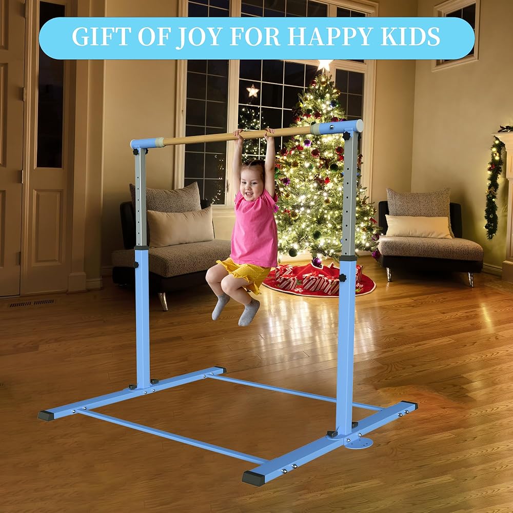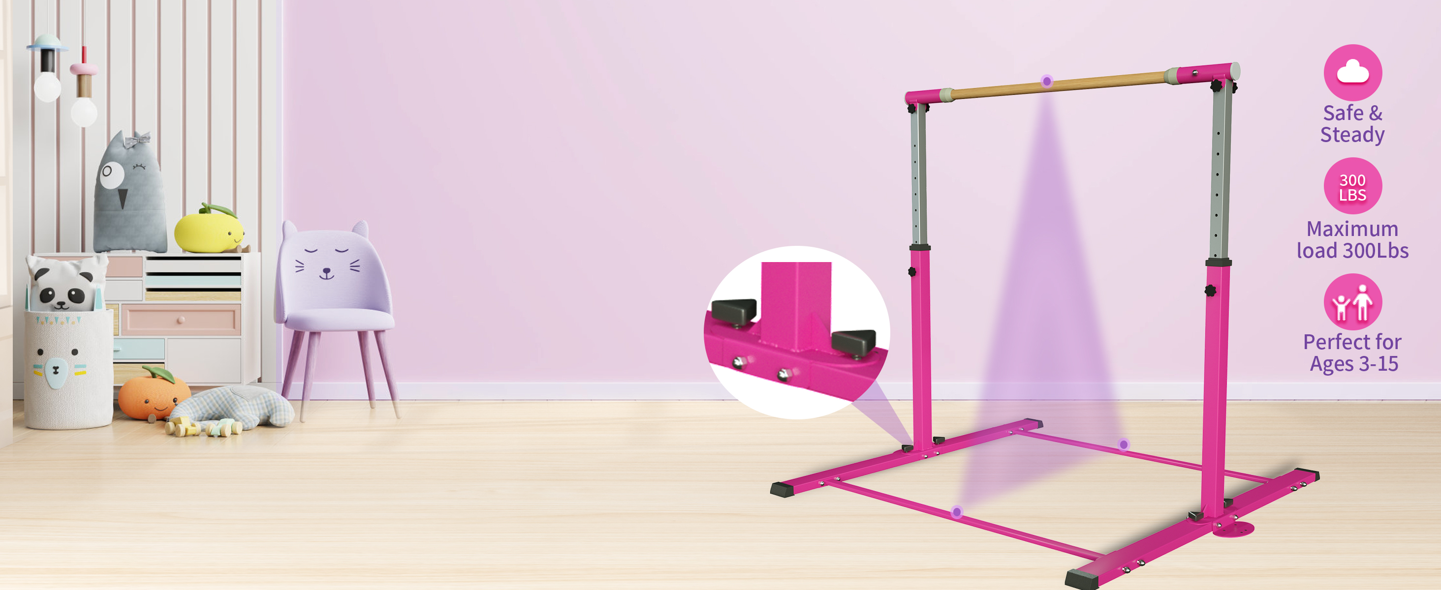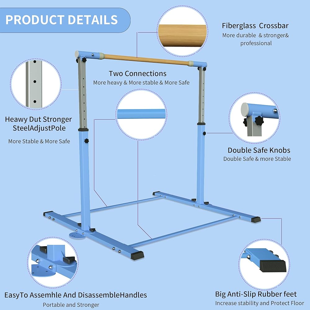 ارتفاع قابل للتعديل: يمكن تعديل ارتفاع قضيب الجمباز بسهولة لأعلى أو لأسفل، من 91.4 سم إلى 139.5 سم مع 11 مستوى، وهو مثالي للاعبي الجمباز الصغار والمستخدمين من أي عمر أو طول حيث يمكن تعديله ليناسب طولهم. ينمو، هيكل القفل القوي يحمي أطفالك من أجل الأمان بنسبة 100%، دع تدريب الجمباز يكون أكثر مثالية!