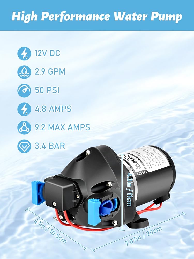 This pump is a self-priming diaphragm pump with slight waterproof function. Please do not put it directly into the water!
