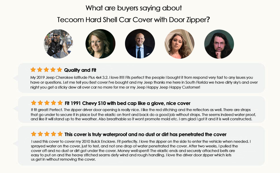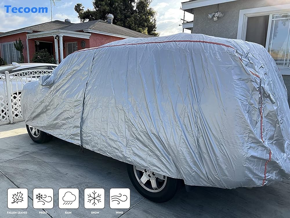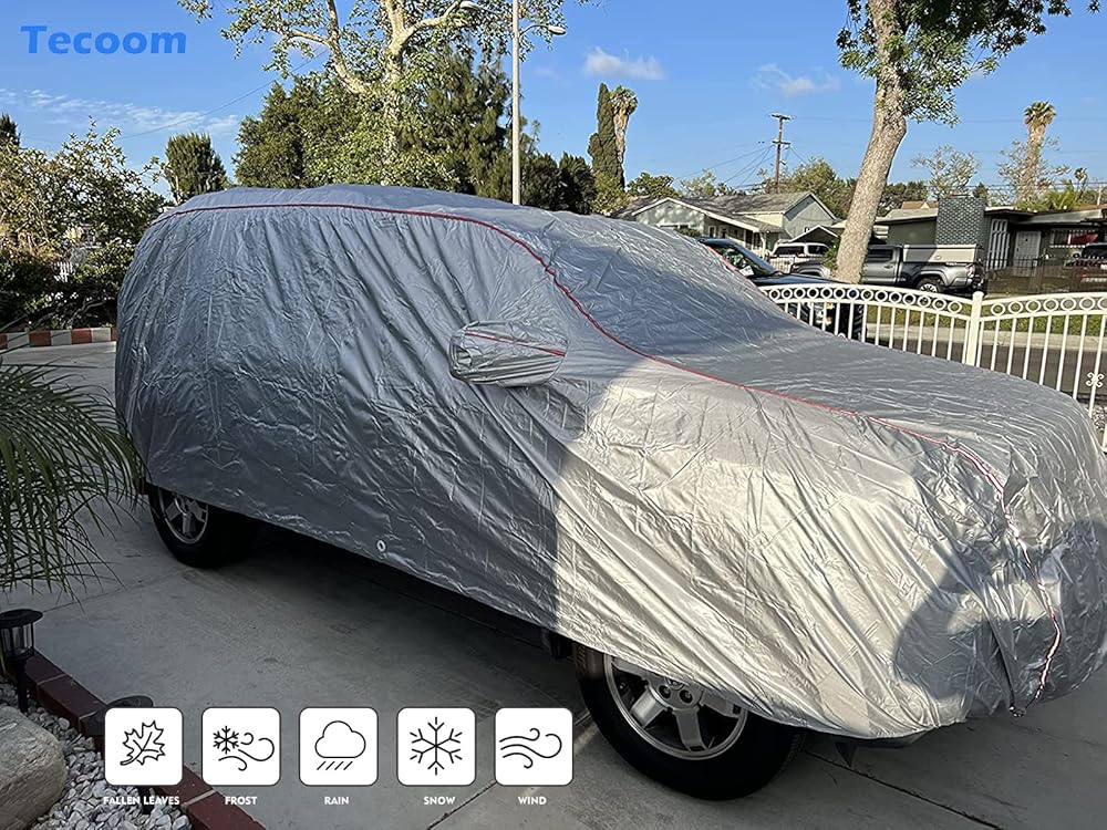 • 【حماية من جميع الأحوال الجوية】أغطية السيارات من تيكوم مثالية للاستخدام الداخلي والخارجي، بغض النظر عن الشمس أو الطقس البارد، وتحمي سيارتك آمنة من الأشعة فوق البنفسجية والثلج والمطر والصقيع والرمل والغبار والأوراق والفروع وسقوط الطيور.