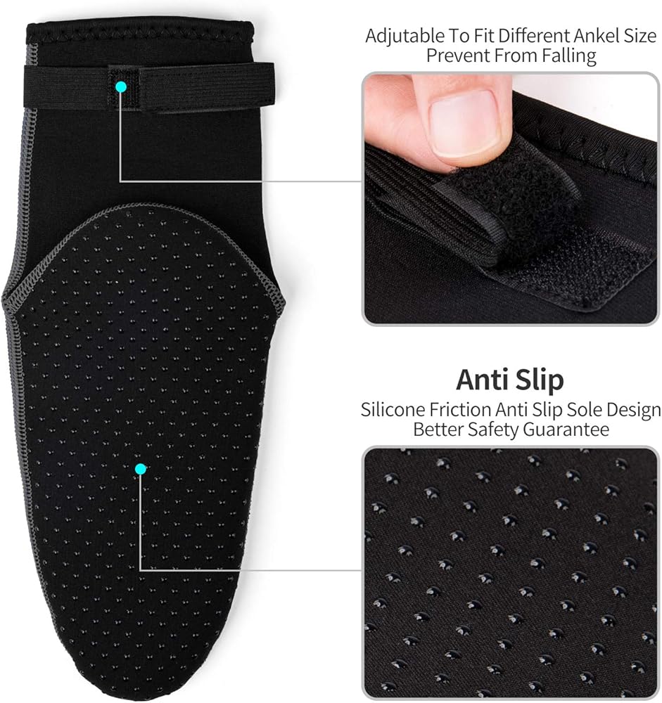 • 【جوارب الشاطئ من النيوبرين للرياضة】جوارب مائية ممتازة مع نعال مطاطية مضادة للانزلاق، مثالية لممارسة الرياضات المائية المتنوعة مثل ركوب المجداف، والصعود على الطائرات الورقية، والتزلج على الجليد، والتجديف والمزيد. يمكن تعديل أحزمة الكاحل المرنة لتناسب أي حجم للكاحل والحفاظ على الجوارب. مريحة بما يكفي لارتدائها طوال اليوم.