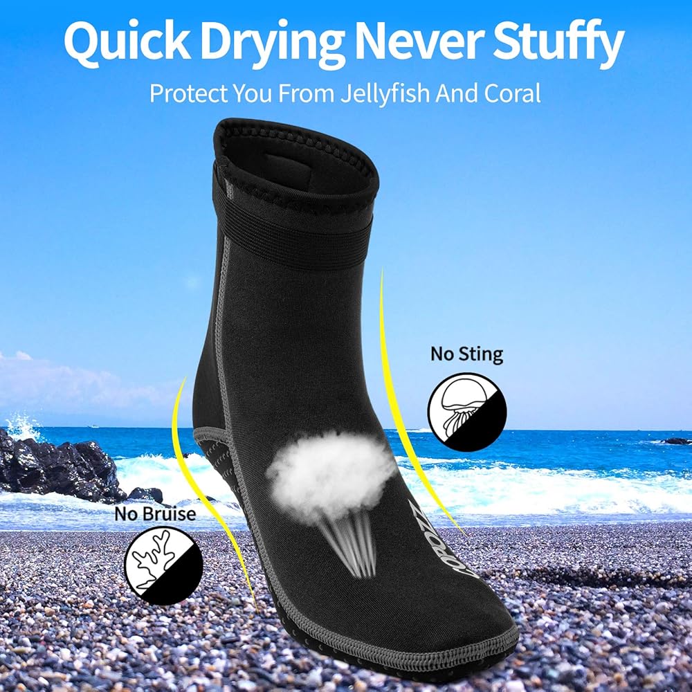 • 【دافئة وواقية】مادة جوارب الغوص هذه سميكة. كما يحتوي الجزء السفلي على مقابض مطاطية صغيرة على السطح. حافظ على دفء قدميك عند التجديف في الماء البارد. تساعد أحزمة الكاحل المرنة حقًا في الحفاظ على الأحذية طويلة الرقبة وإبعاد الرمال. مريحة بما يكفي لارتدائها طوال اليوم.