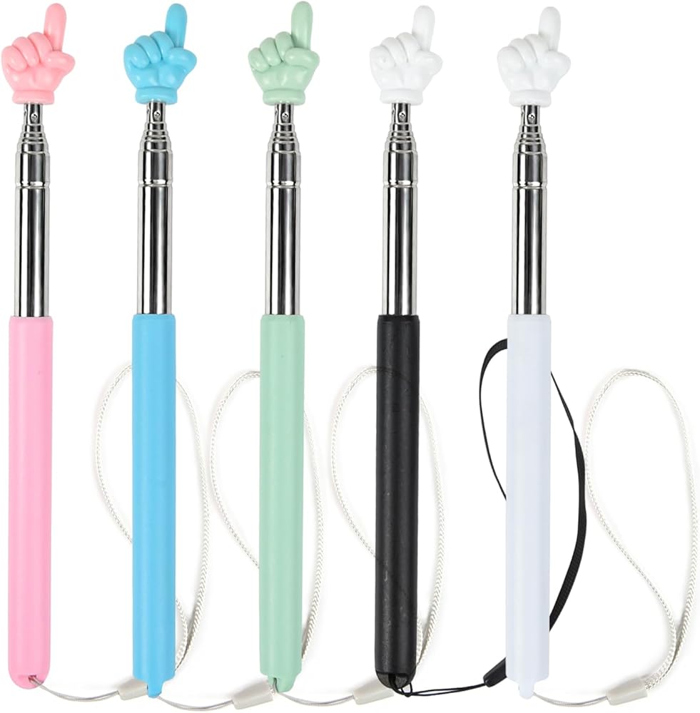 5 قطع مؤشرات قابلة للسحب للفصول الدراسية للأطفال، عصا مؤشر تلسكوبية للمعلم، مؤشر إصبع اليد طويل يمتد إلى 35 بوصة مع حبال لقراءة العروض التقديمية الناطقة للأطفال في المدرسة الابتدائية