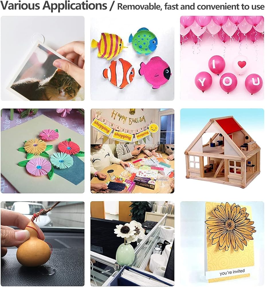 • تطبيق واسع: لا تستخدم فقط على الملصق وحامل الصور، يمكن استخدام النقاط اللاصقة الخاصة بنا لتعليق الصور، كوسائد لاصقة للتثبيت، ونقاط بالون، ومنصات لاصقة للوحة أجهزة القياس في السيارة، ونقاط للحرف اليدوية، ومعجون الملصقات، ومعجون الحائط لتعليق الأشياء. والديكور وحماية الأثاث، الخ.