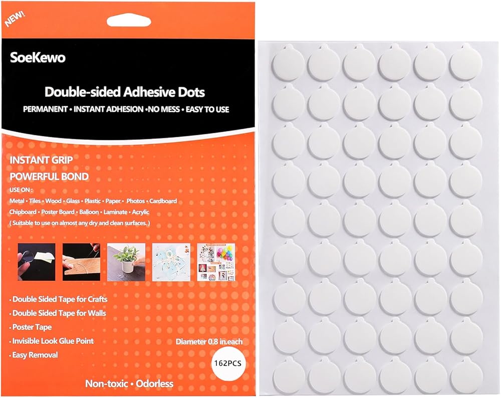 • الحجم: يبلغ قطر النقاط اللاصقة حوالي 20 مم / 0.8 بوصة، والسمك 1 مم / 0.04 بوصة. الكمية: 162 قطعة، كمية كافية لتلبية احتياجاتك المختلفة.