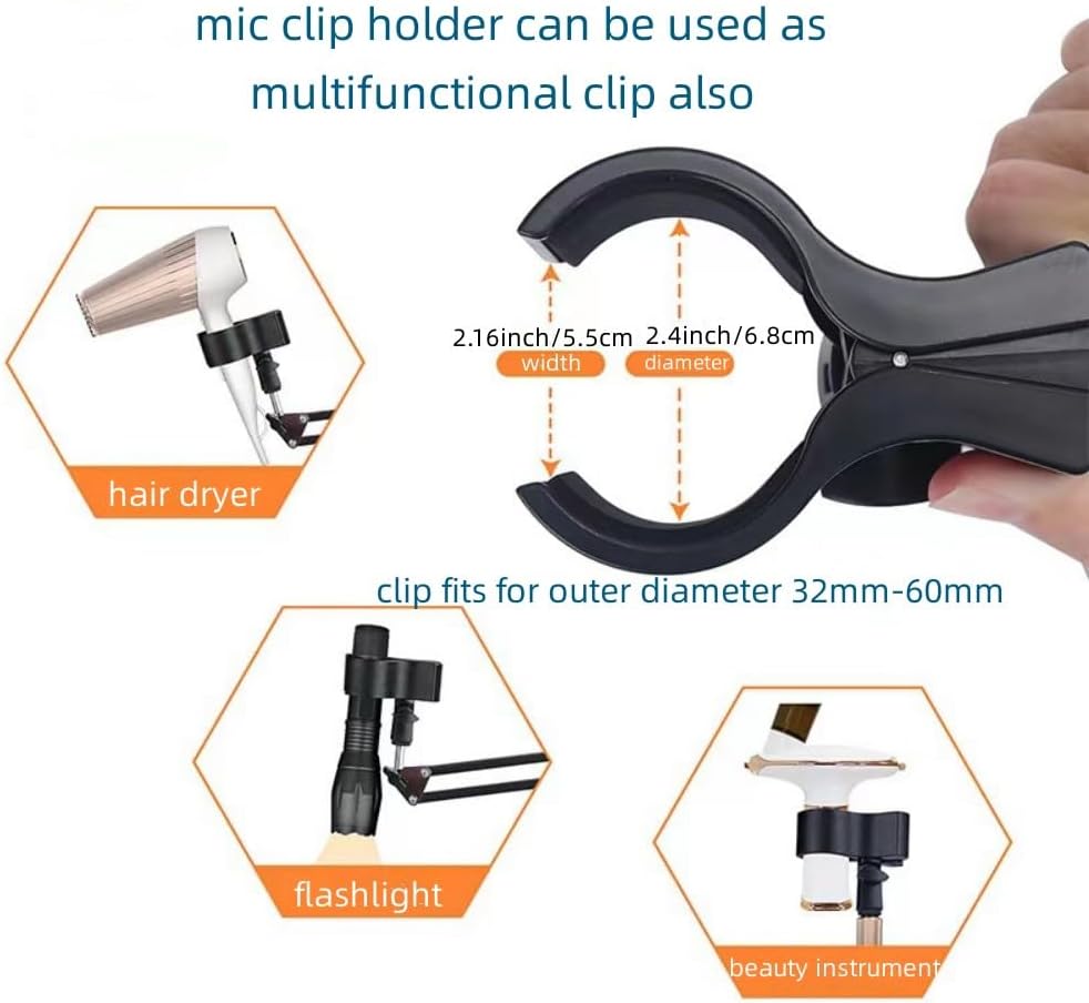 ➤ 【حامل مشبك ميكروفون لتطبيقات واسعة】 - مشبك الميكروفون الكبير هذا يناسب معظم الميكروفونات، وهو مناسب تمامًا للميكروفون الكبير الحجم وميكروفونات الكاريوكي التي تسجل حجم الميكروفون الذي يتراوح من 32 مم/ 1.26 بوصة إلى 60 مم/2.36 بوصة، على سبيل المثال Shure SM57 SM58 SM86 SM87، HyperX Quadcast، Samson Q2U، ATR2100، AT2020، AT2020USB+، AT2035، Rode NT1A، Fifine K669B، Razer Seiren X، Neumann TLM102، Rockband، Mackie Element EM-USB والمزيد. لذا يرجى قياس حجم الميكروفون الخاص بك قبل الطلب.