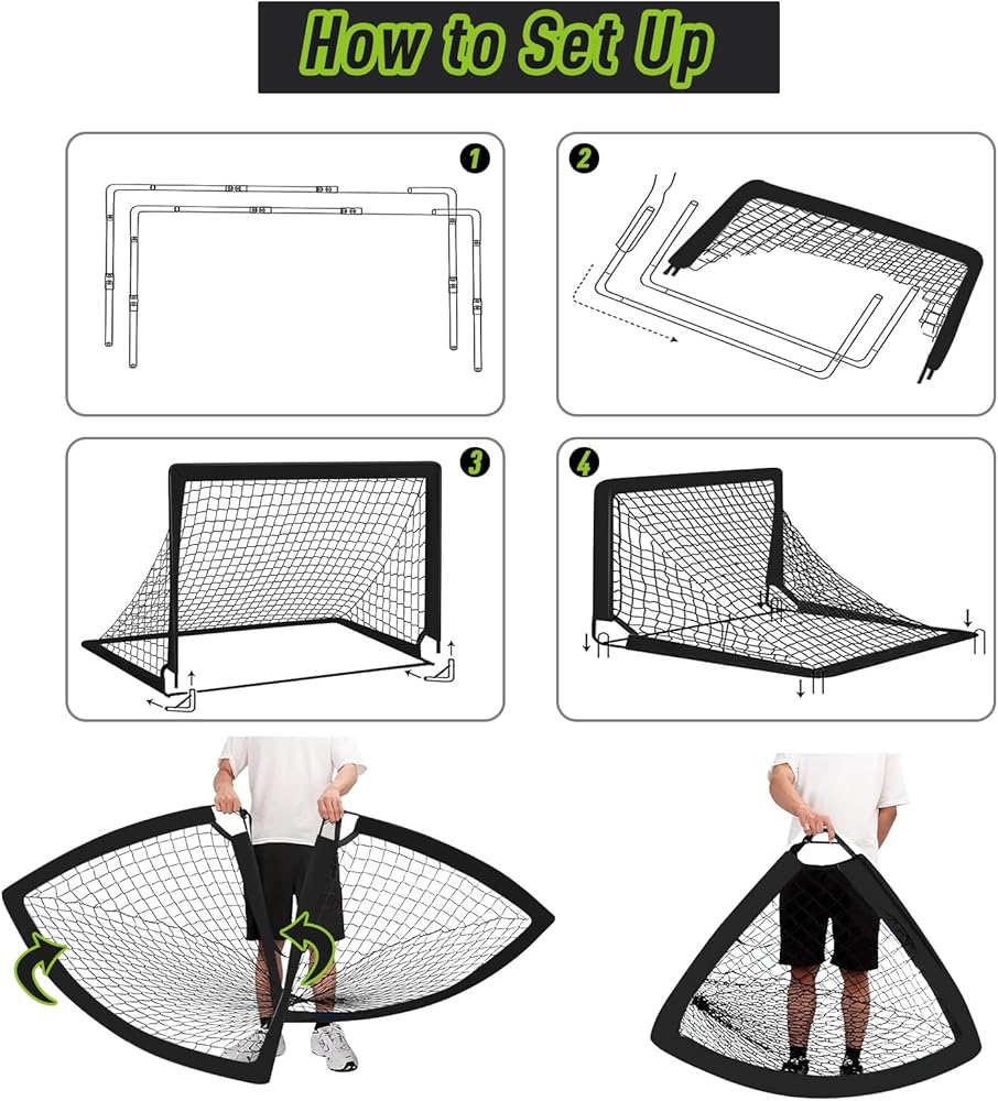 Easy To Assemble & Strong Stability: Simple operation and installation will not make your lose patience. With friendly design and clear instructions, you can quickly assemble the soccer goal and start playing right away. No special tools or expertise is required, just needs to place the poles at the top and bottom and connect them, and he can simply twist it into a flat shape and end up doing it with ease.