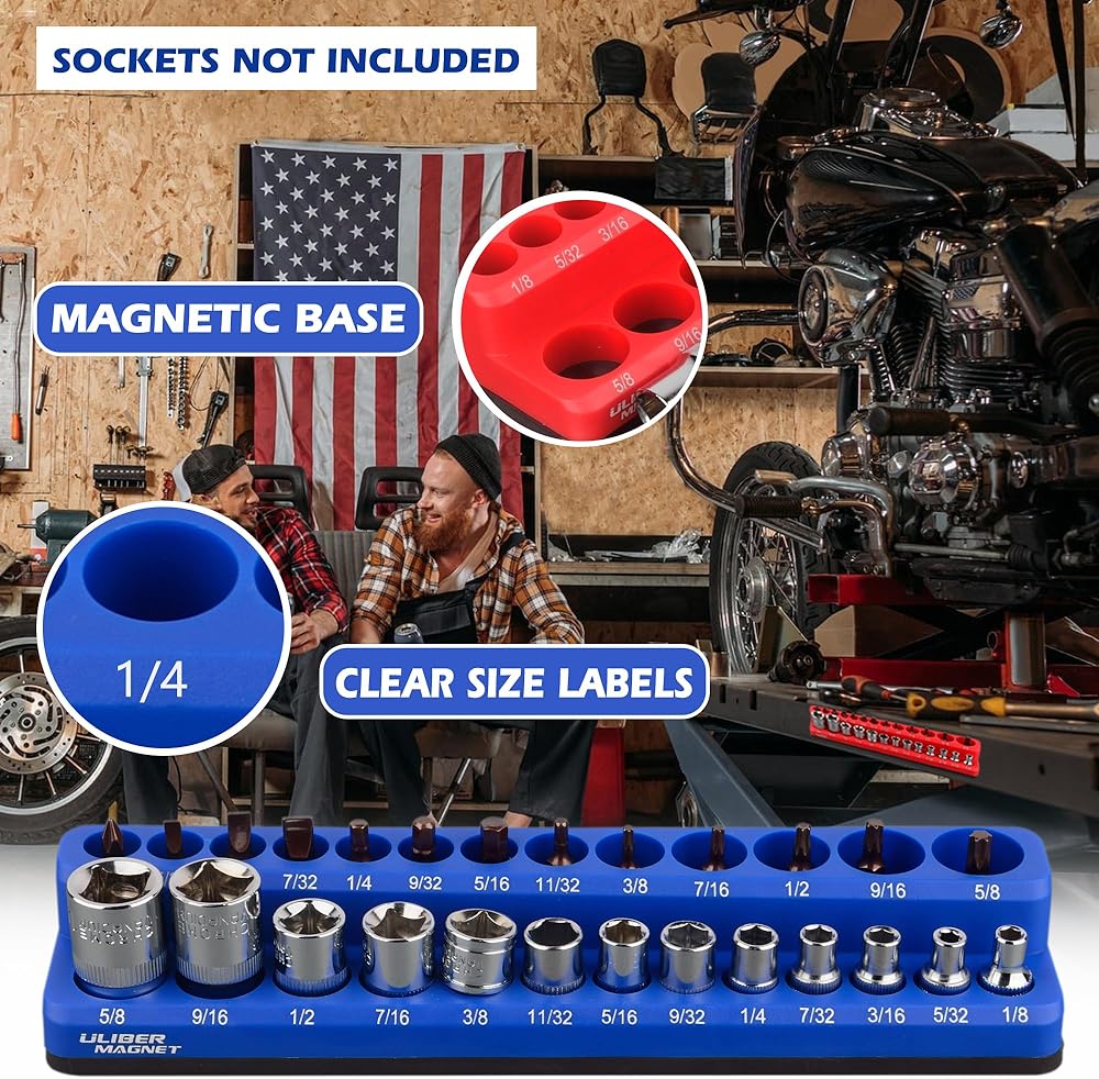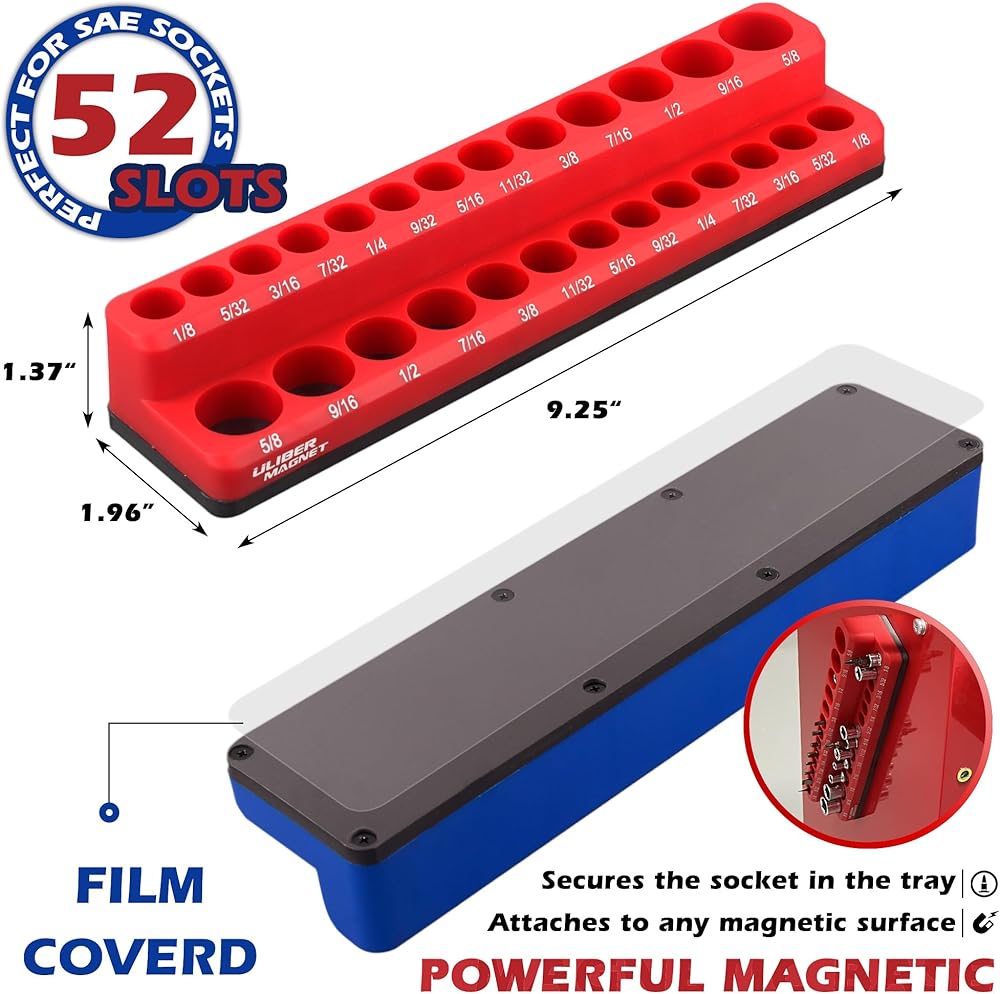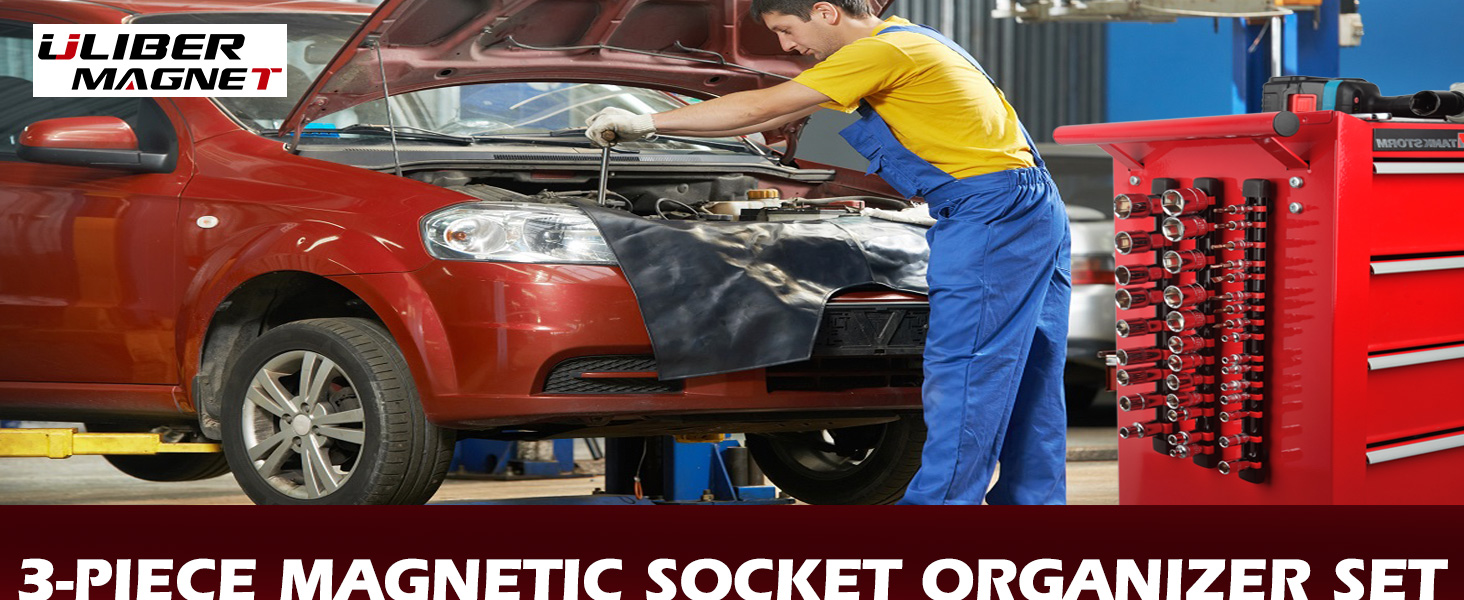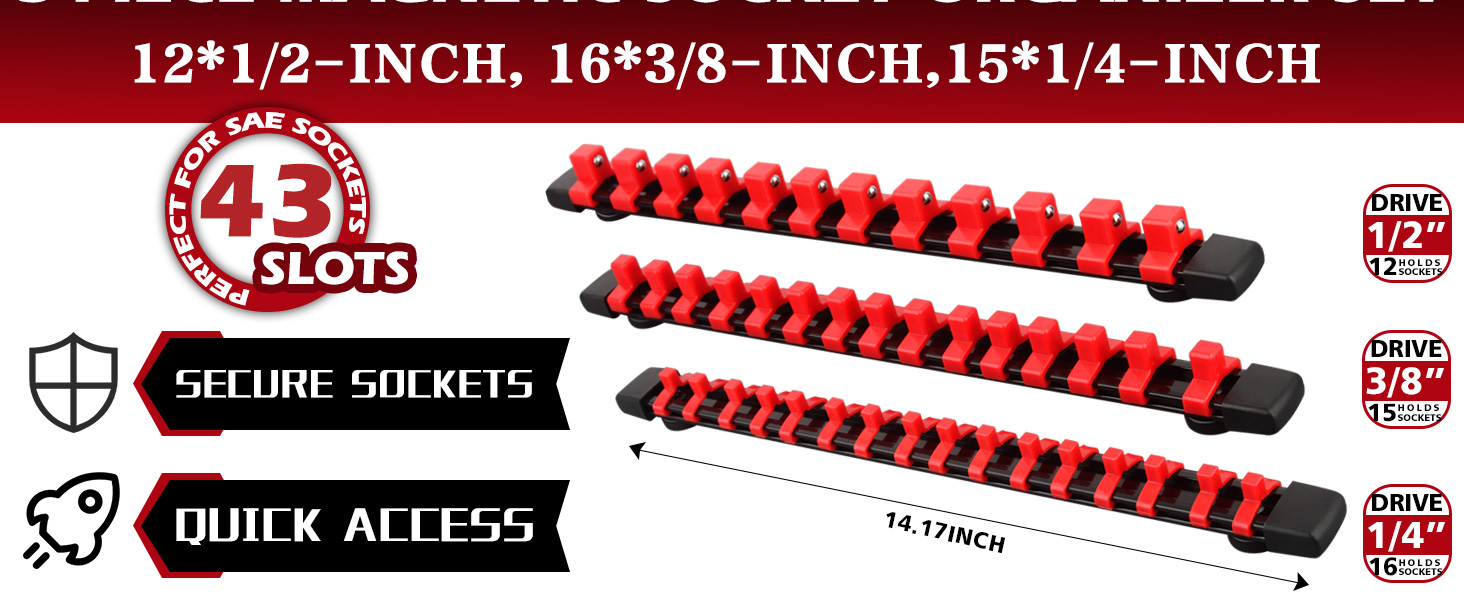 [مجموعة منظم المقبس المغناطيسي]: تتضمن مجموعة منظم المقبس المغناطيسي المكونة من 3 قطع مشابك مقبس 12*1/2 بوصة، و15*3/8 بوصة، و16*1/4 بوصة. مصنوعة من بلاستيك ABS المصبوب عالي التحمل، وقضبان PP عالية القوة ومقاومة للتآكل، ومشابك ABS متينة ومقاومة للصدمات، تمنع التشوه عند تحميلها بالكامل.
