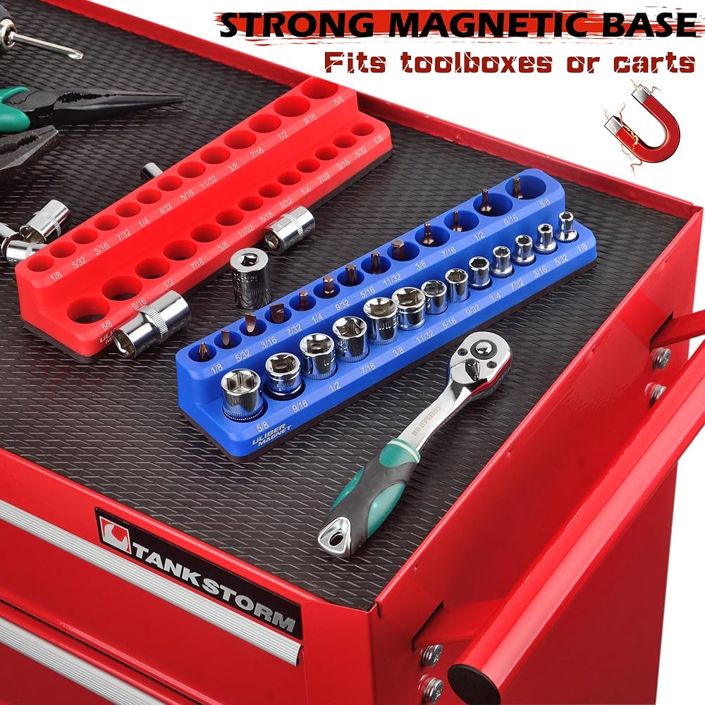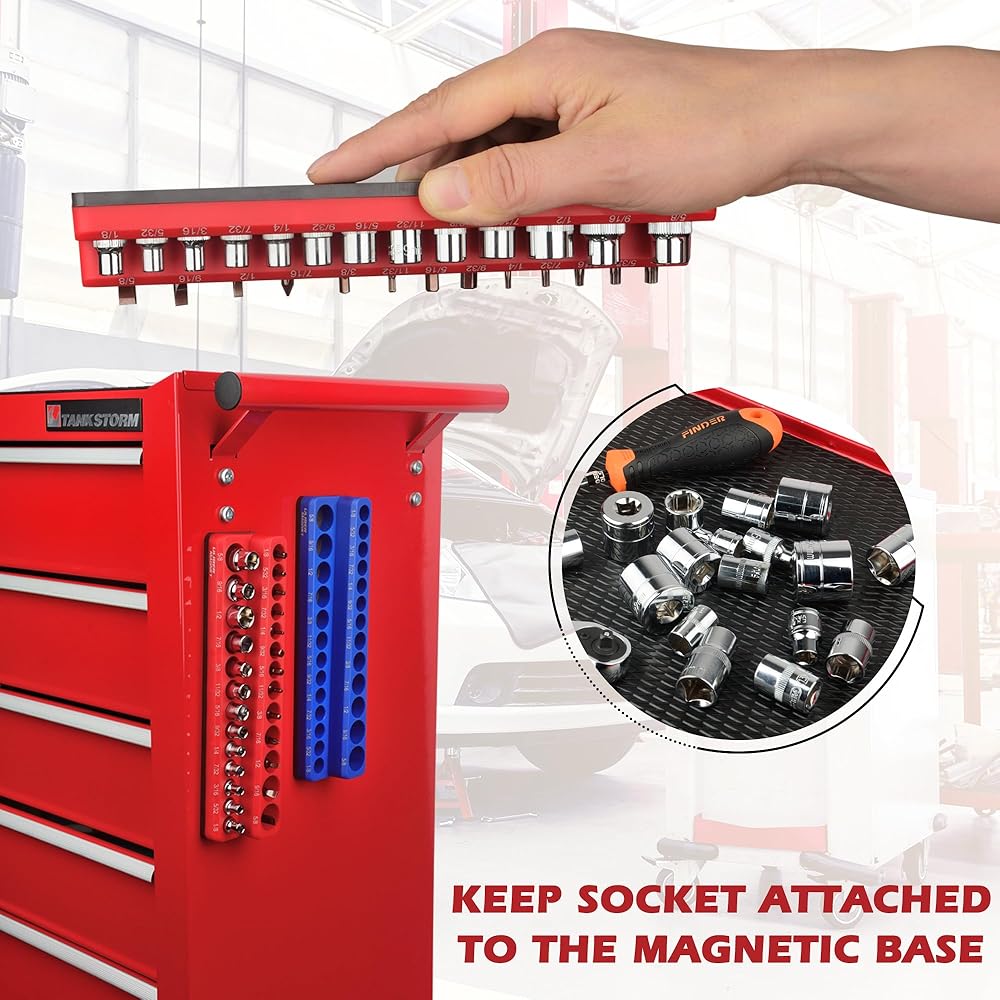 [سهلة الاستخدام]: يتم ربط مجموعة منظم المقبس المغناطيسي بأي سطح معدني وتنظم المنافذ على سكة سهلة الاستخدام. لا تشغل مساحة كبيرة، وتتطلب تركيبًا بسيطًا، وتنظم صناديق الأدوات ومناطق العمل المزدحمة بشكل فعال.
