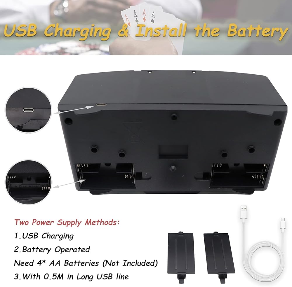 [خط USB ويعمل بالبطارية] - ما عليك سوى الضغط على الزر لغسل بطاقتين تلقائيًا في بضع ثوانٍ. تتطلب 4 بطاريات AA (غير متضمنة) مع خط USB مقاس 19.7 بوصة. كفاءة وسهلة التشغيل، استمتع بخلط سريع وسهل. (لا يتم تضمين البطاريات).