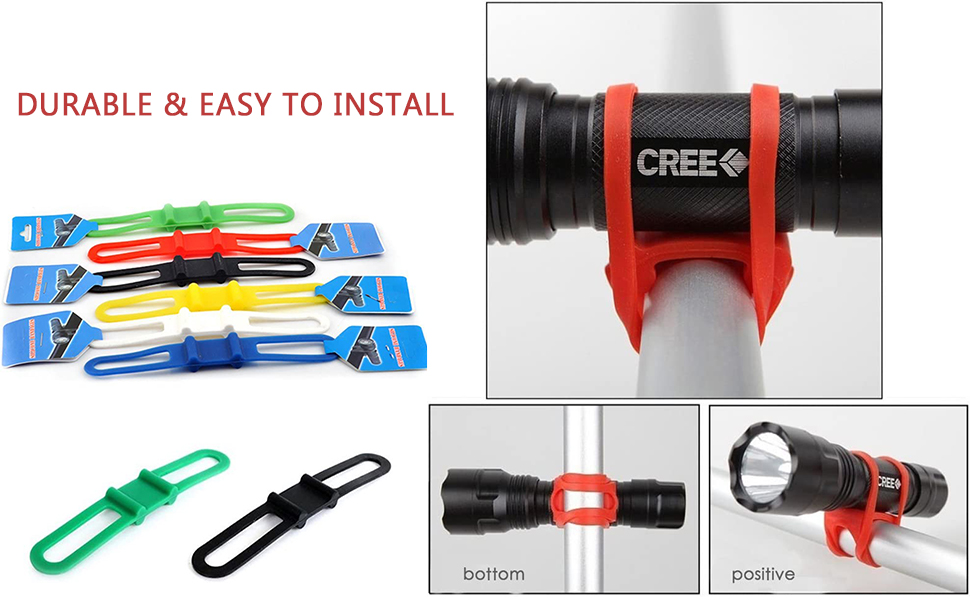 • ✅متين وعالي المرونة: مصنوع من السيليكون الفاخر، تم تصميم حامل المصباح اليدوي هذا ليدوم طويلاً. مما يضمن بقاء المصباح اليدوي مثبتًا بشكل آمن على دراجتك.