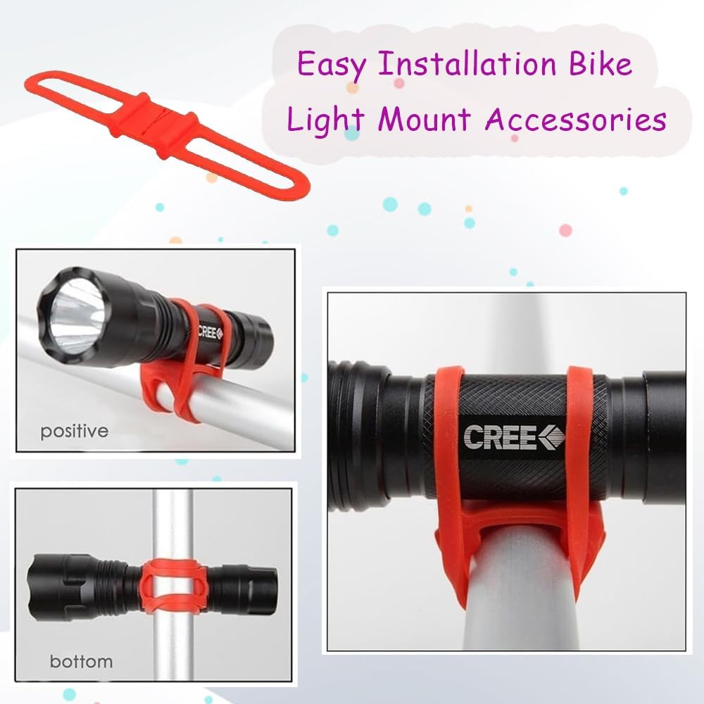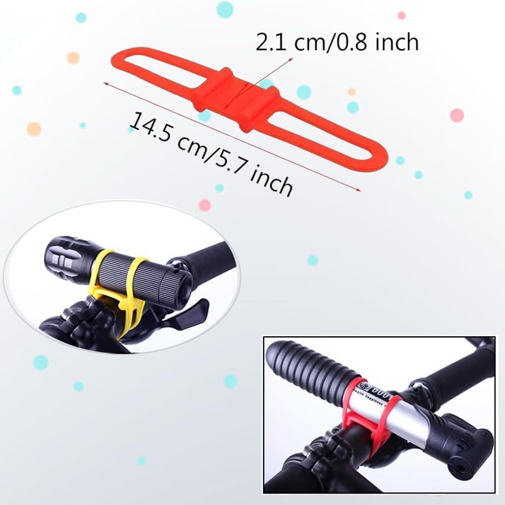 5 قطع من مصابيح الدراجة - ملحقات تثبيت مصابيح الدراجة متعددة الأغراض وسهلة التركيب - حزام سيليكون متين يعلق المصباح بشكل آمن