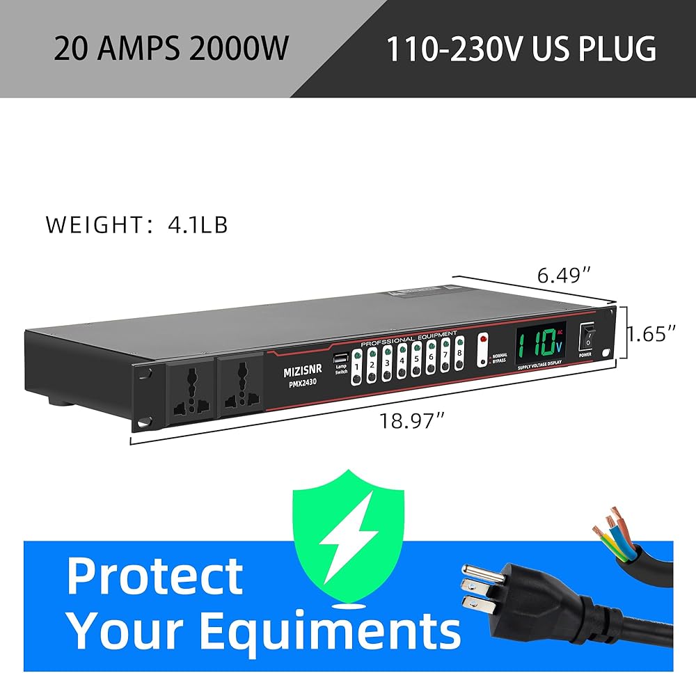 • مكيف طاقة احترافي بقدرة 2000 وات 20 أمبير: تتميز وحدة التحكم في تسلسل مصدر الطاقة لدينا بشاشة LCD كبيرة لمراقبة الجهد الكهربي في الوقت الفعلي، مما يوفر حماية مطورة للأجهزة المنزلية ومعدات استوديو إنتاج الموسيقى ضد الأضرار الكهربائية الناجمة عن انقطاع التيار المفاجئ. فهو يضمن طاقة تيار متردد نظيفة لمعداتك الكهربائية.