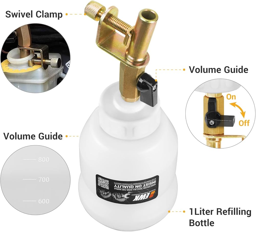 EWK 1L زجاجة إعادة تعبئة سائل الفرامل ذات الأسطوانة الرئيسية، زجاجة نازف توزيع خدمة الفرامل