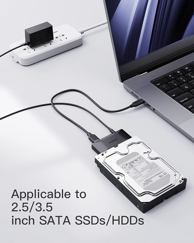 محول Inateck SATA إلى USB 3.2 Gen 2، كابل محول القرص الصلب لـ 2.5/3.5 بوصة SSD/HDD، متضمن محول طاقة 12 فولت/2 أمبير، نقل ثنائي الاتجاه