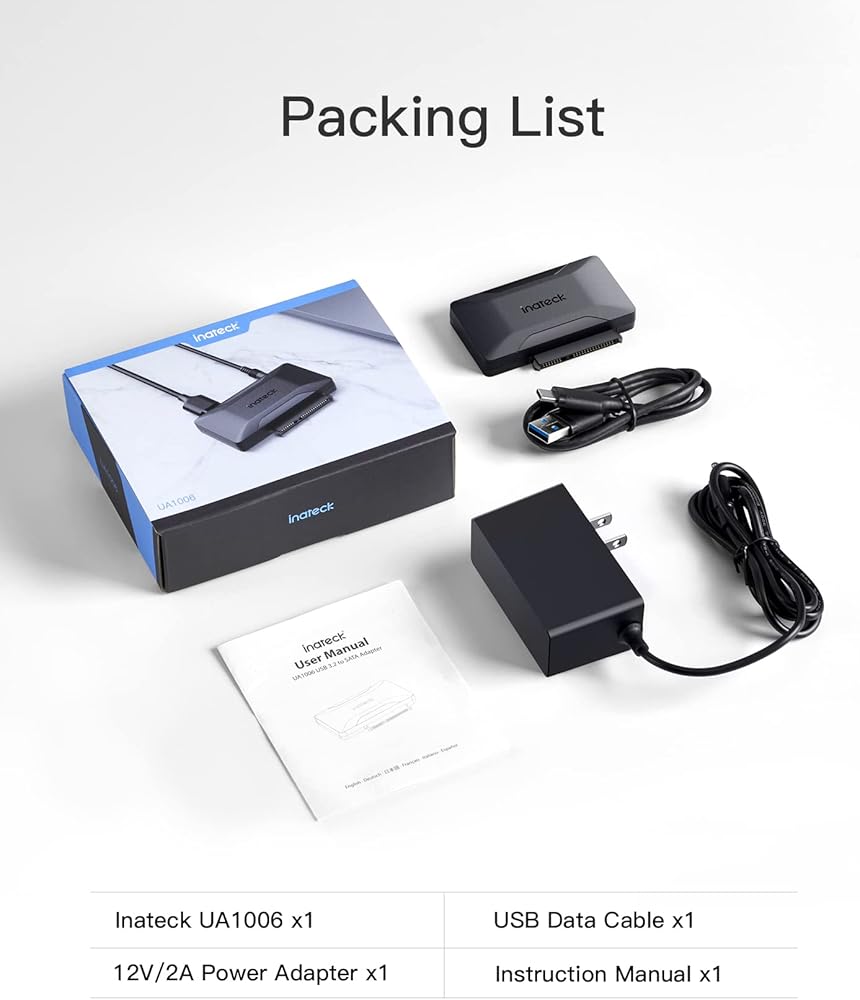 • يتوافق محول SATA إلى USB مع أنظمة التشغيل Windows 11/10/8/7 وMac OS وLinux. التوصيل والتشغيل، لا يحتاج إلى سائق. ملاحظة: إذا كنت بحاجة إلى توصيل Inateck UA1006 بهاتفك الذكي أو جهازك اللوحي الذي يعمل بنظام Android، فيرجى التحقق مما إذا كان جهازك يدعم OTG.