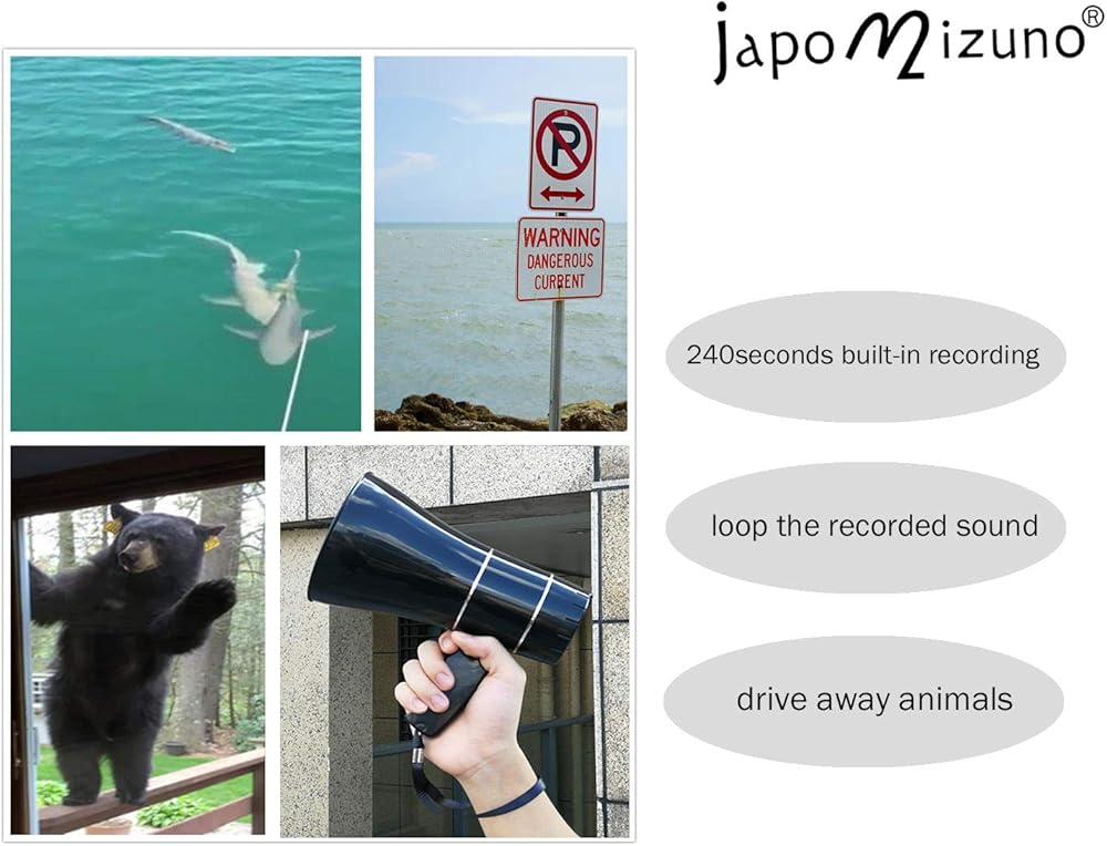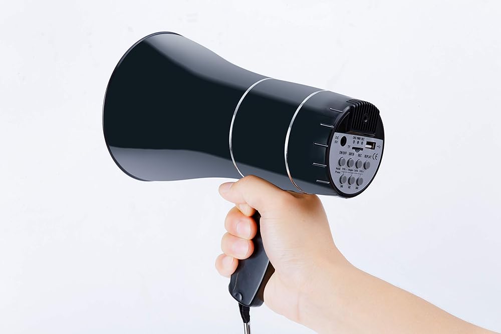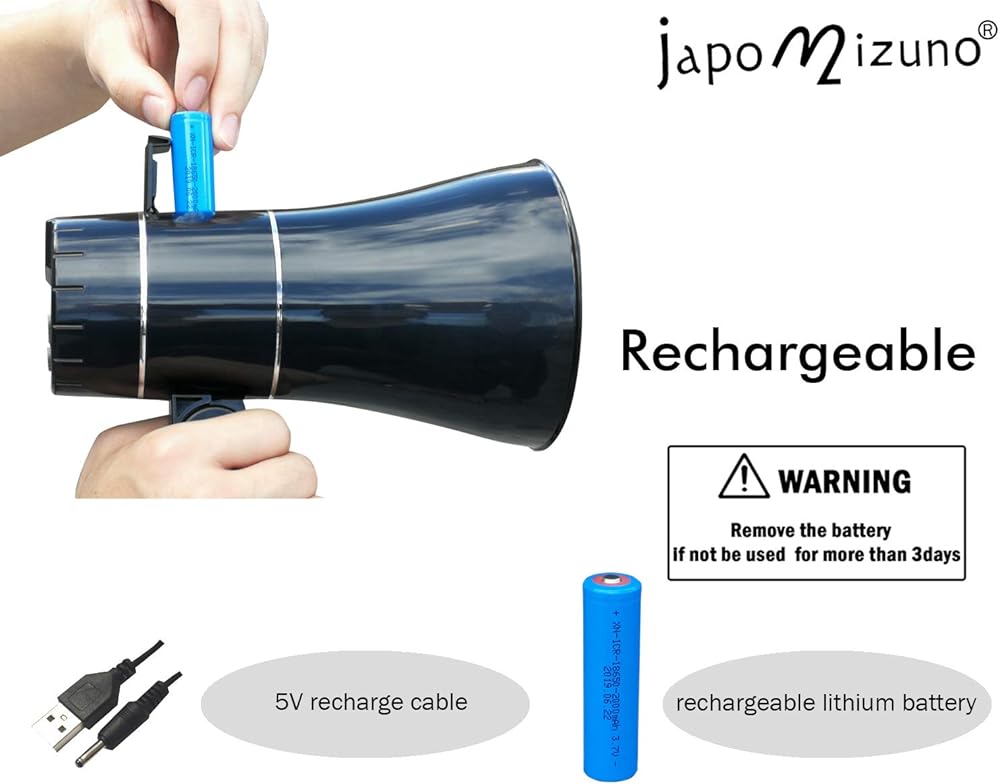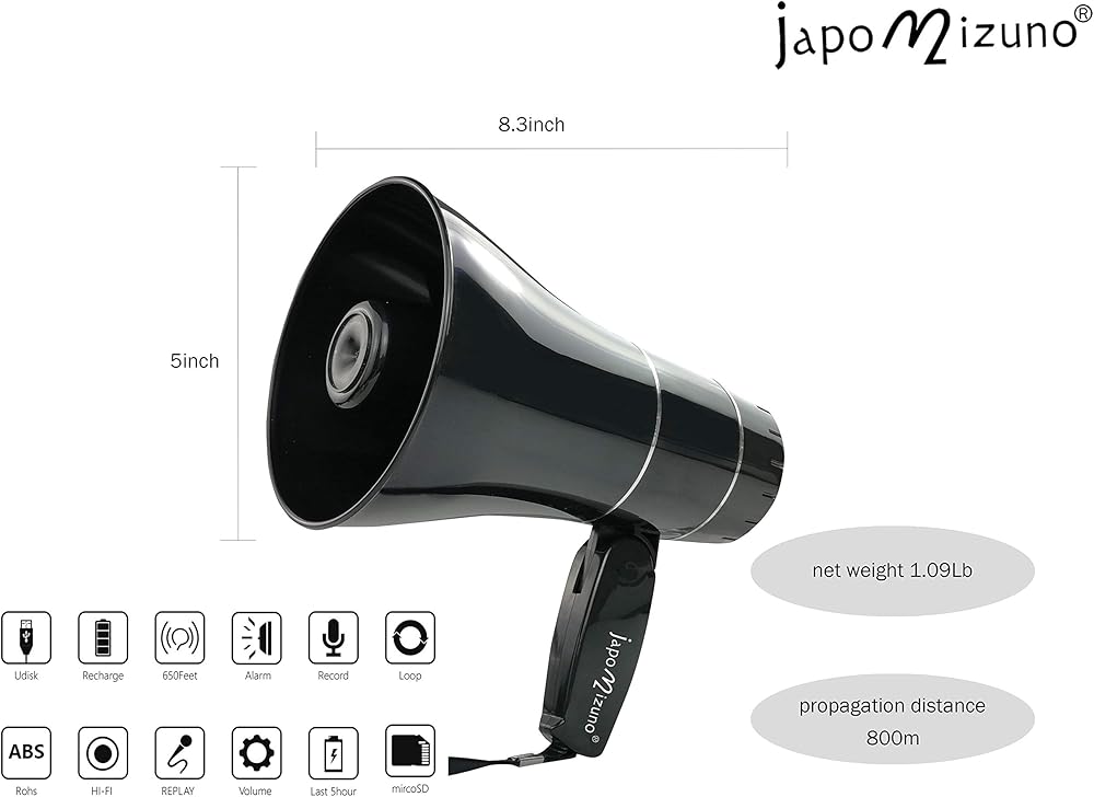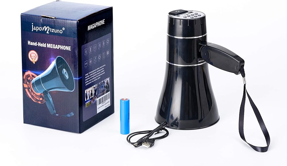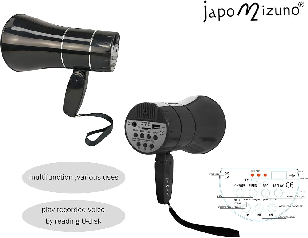 مكبر صوت مكبر صوت قابل لإعادة الشحن من جابوميزونو بولهورن مع تسجيل 240 درجة، صفارة الإنذار، مشغل قرص U، نطاق 800 ياردة، بطارية قابلة لإعادة الشحن